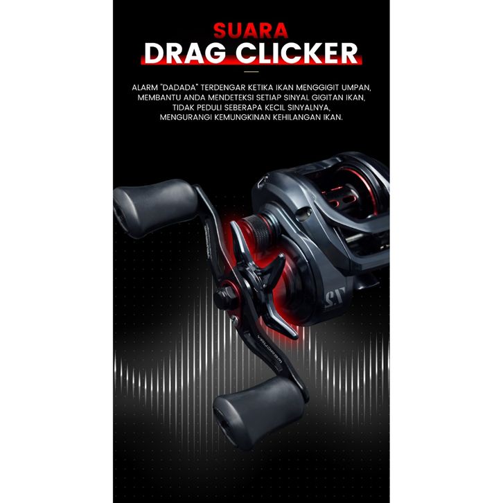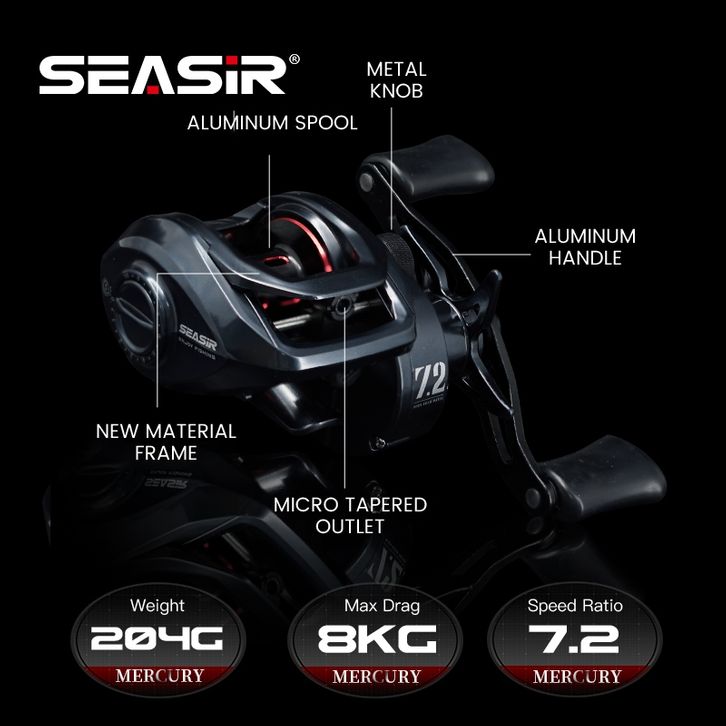 SEASIR MERCURY Hitam Reel BC Reel Pancing Baitcasting, Drag Clicker, 5+1 BB Ball Bearings, 7.2:1 Gear Ratio, 8kg Ma