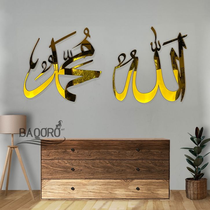 HIASAN KALIGRAFI DINDING 1 SET AKRILIK ALLAH MUHAMMAD WARNA DEKORASI PAJANGAN RUMAH ISLAMI RUANG MUSHOLLA