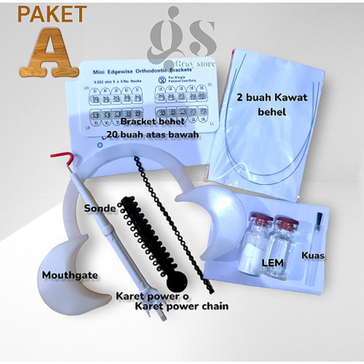 Paket Behel 1 Set Lengkap sama Lem Sonde Pembuka Mulut free 2 Karet Behel Bisa Request Warna Tahan Lama