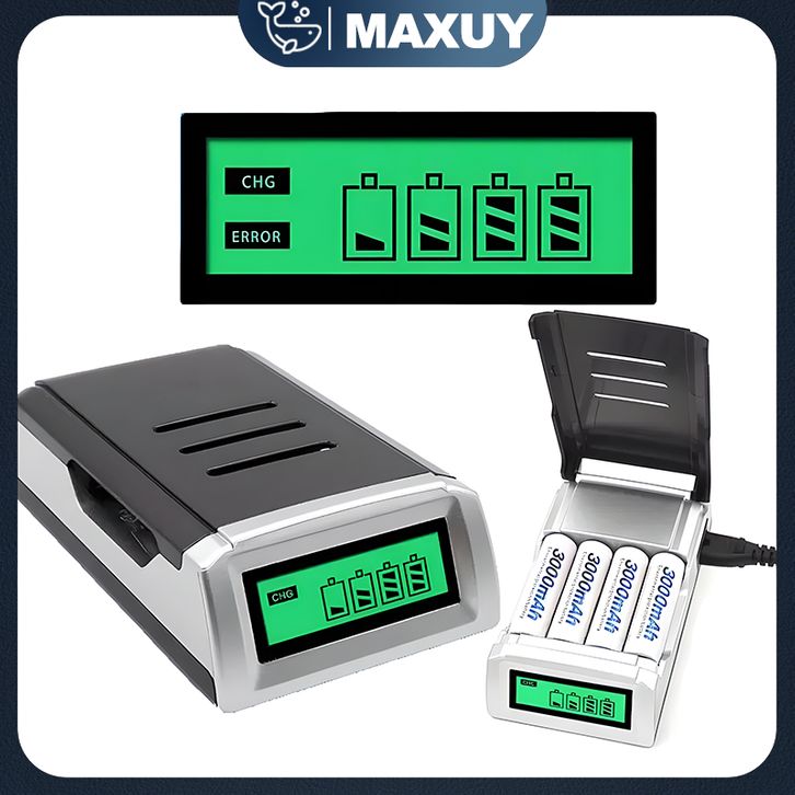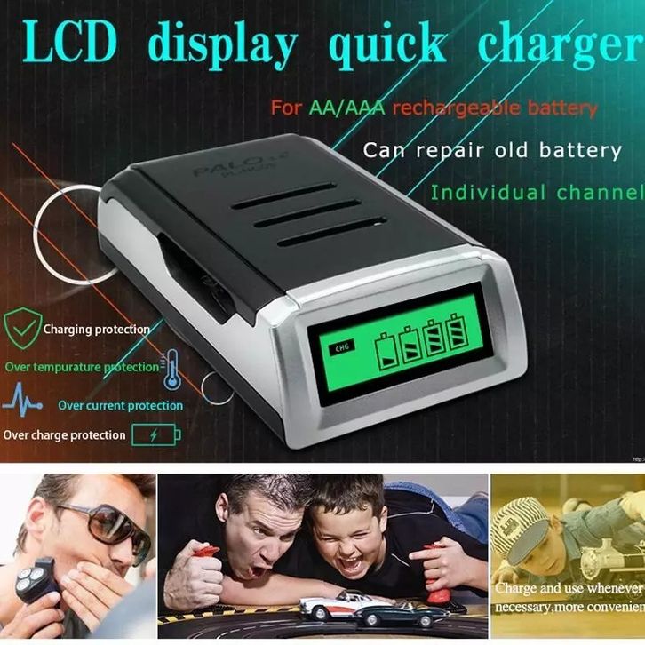 Smart Intelligent LCD 4 Slot Charger Baterai for AA, AAA NiMh NiCd - C905W