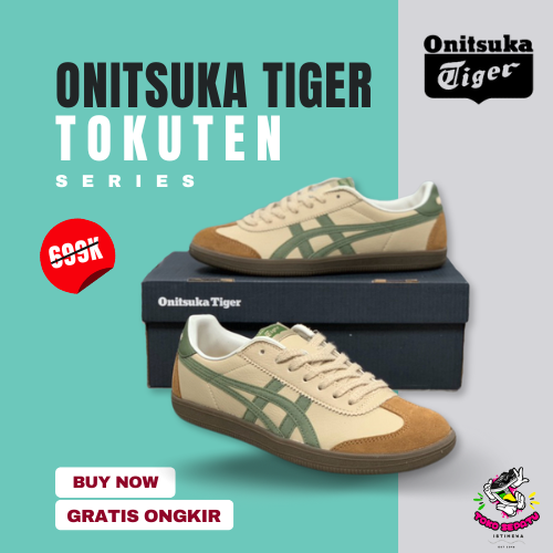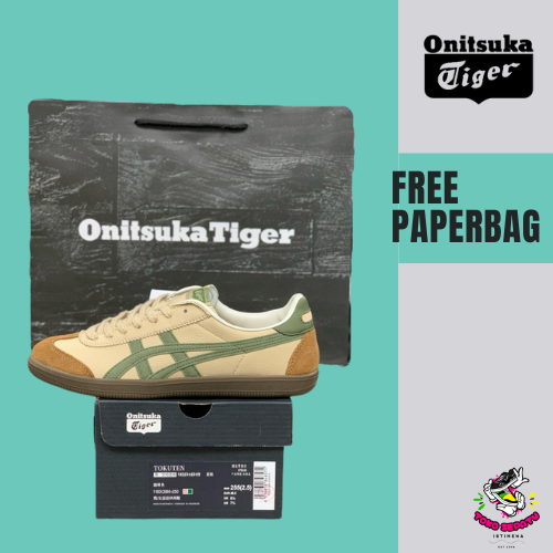 Sepatu Sneakers Pria Wanita Onitsuka Tiger Tokuten Beige Green Birch Kualitas Premium Promo Free Paperbag