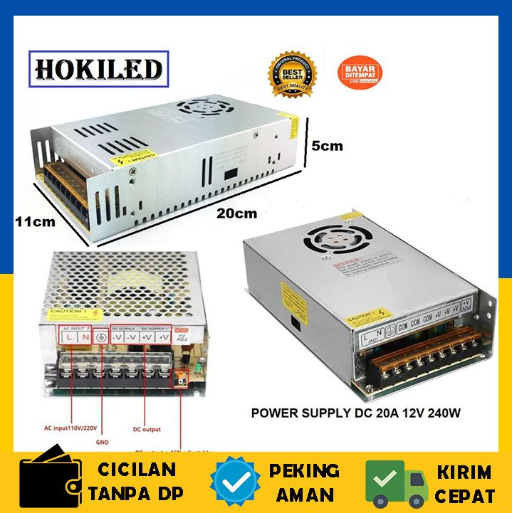 Terlaris TRAFO 20A POWER SUPPLY SWITCHING 12V 20A 240 WATT COCOK UNTUK CCTV LED RADIO DSB