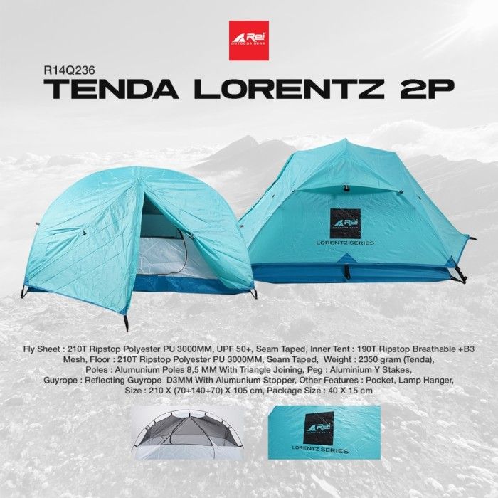 Tenda Camping Lorentz Kapasitas 2 Orang Arei Outdoorgear - Hijau tenda camping double layer