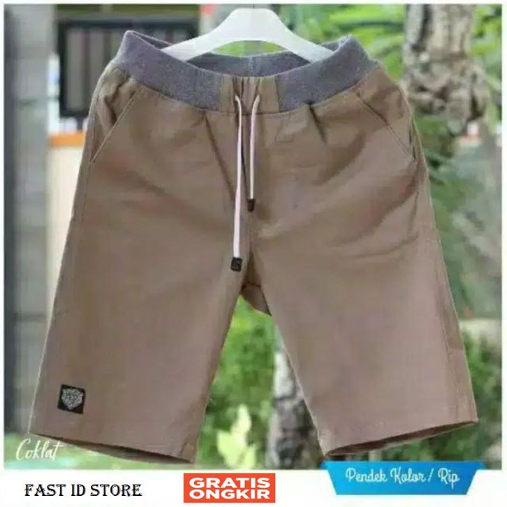 Celana Chino Pendek Pria mick pinggang karet rip katun twill krem coklat surfing santaI