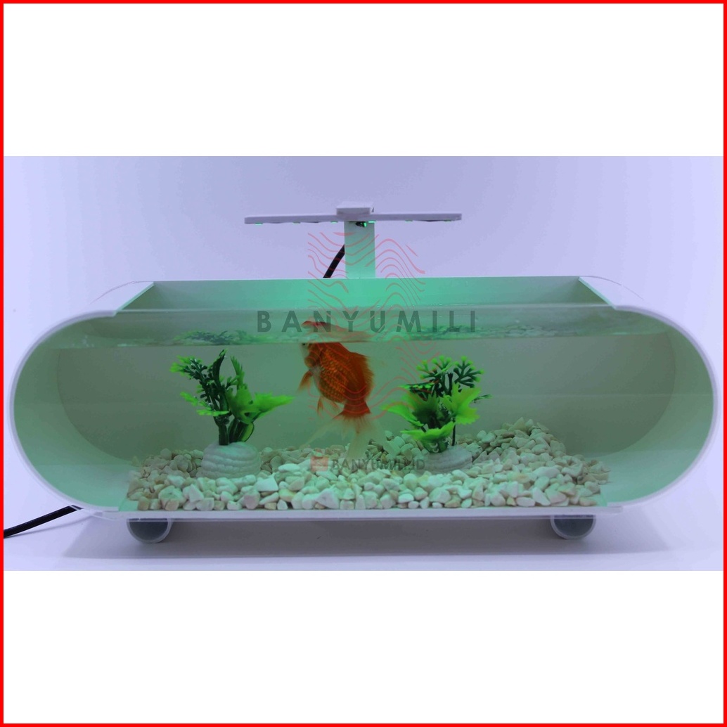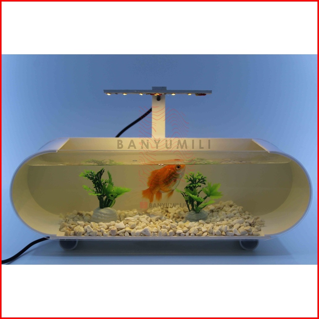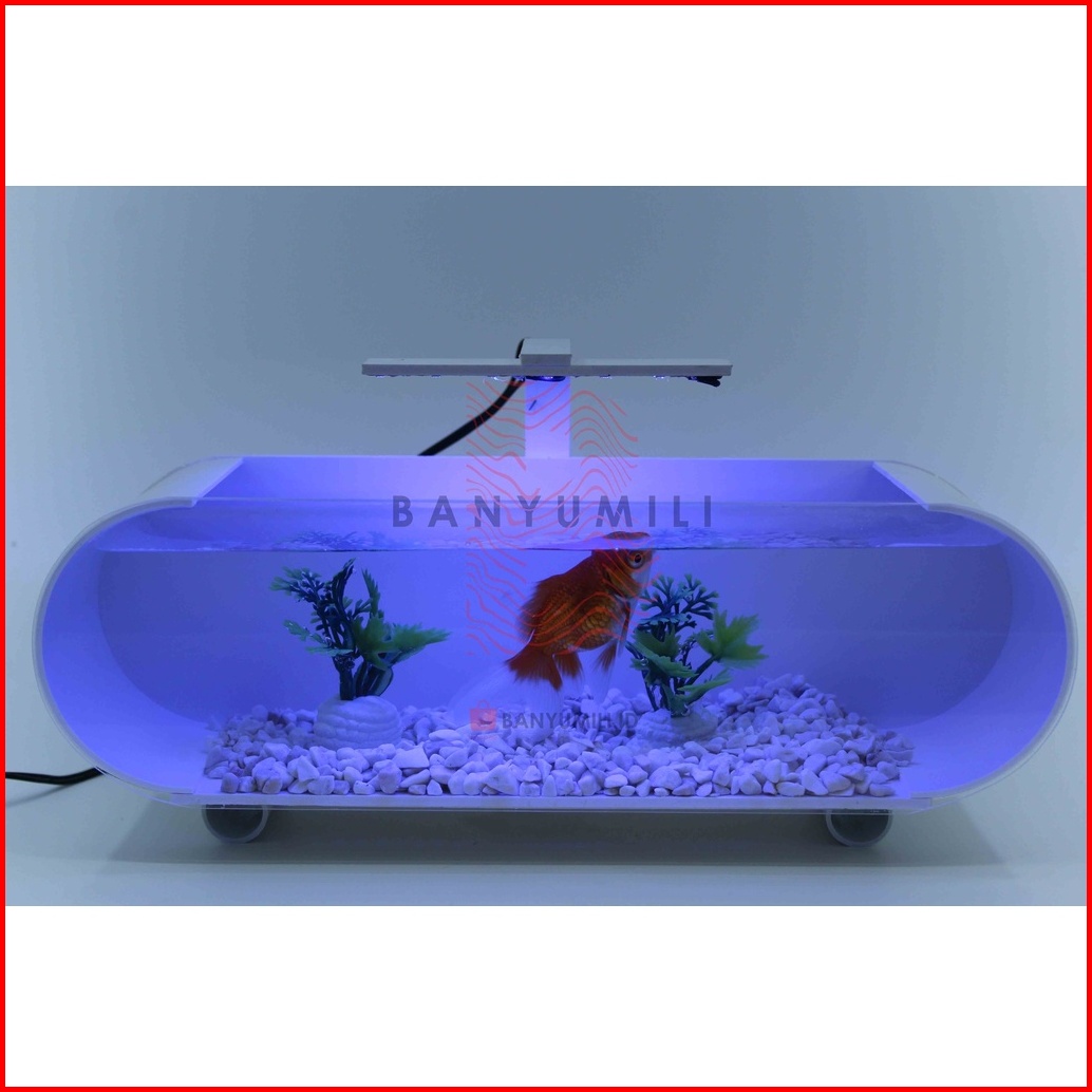 Aquarium Akuarium Mini Ikan Hias Full Set Lampu Led Kerikil Tanaman Hias