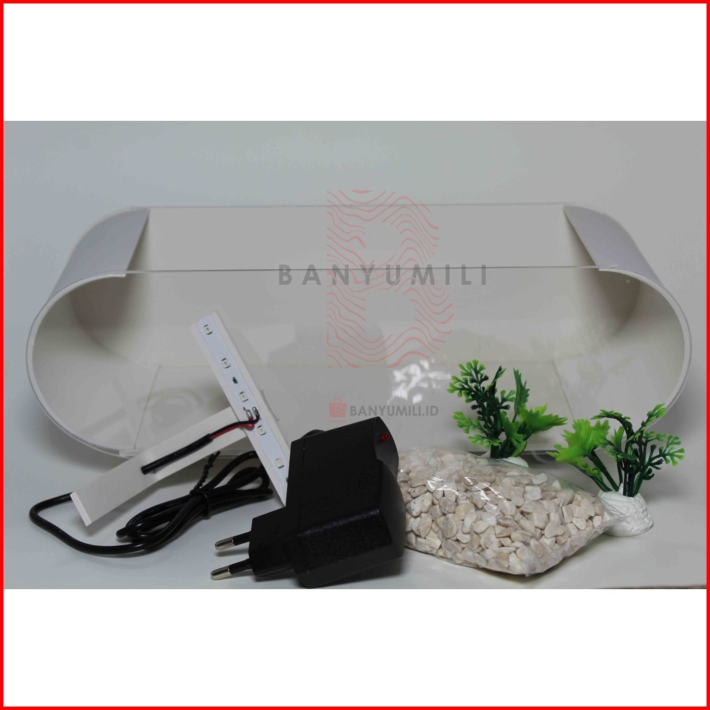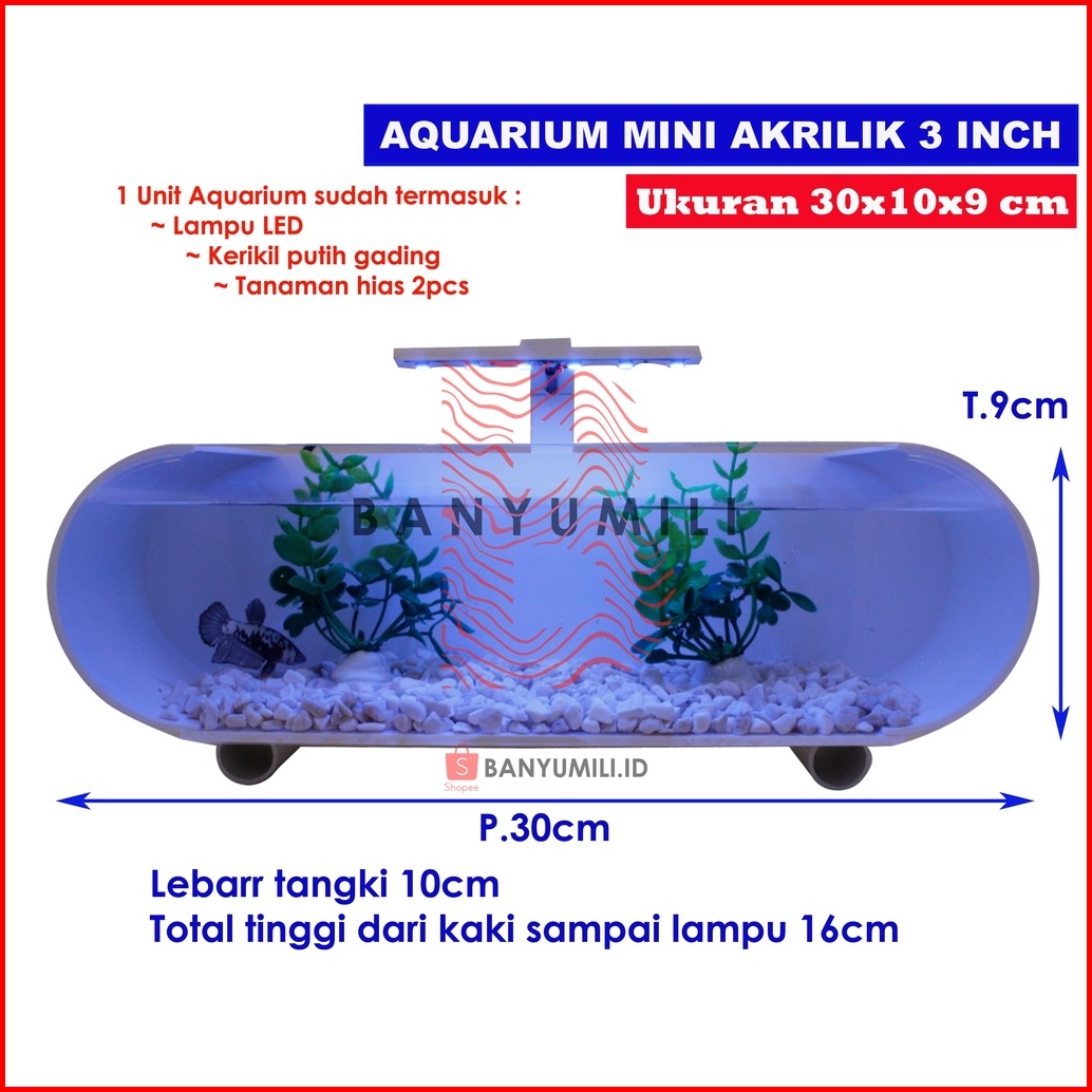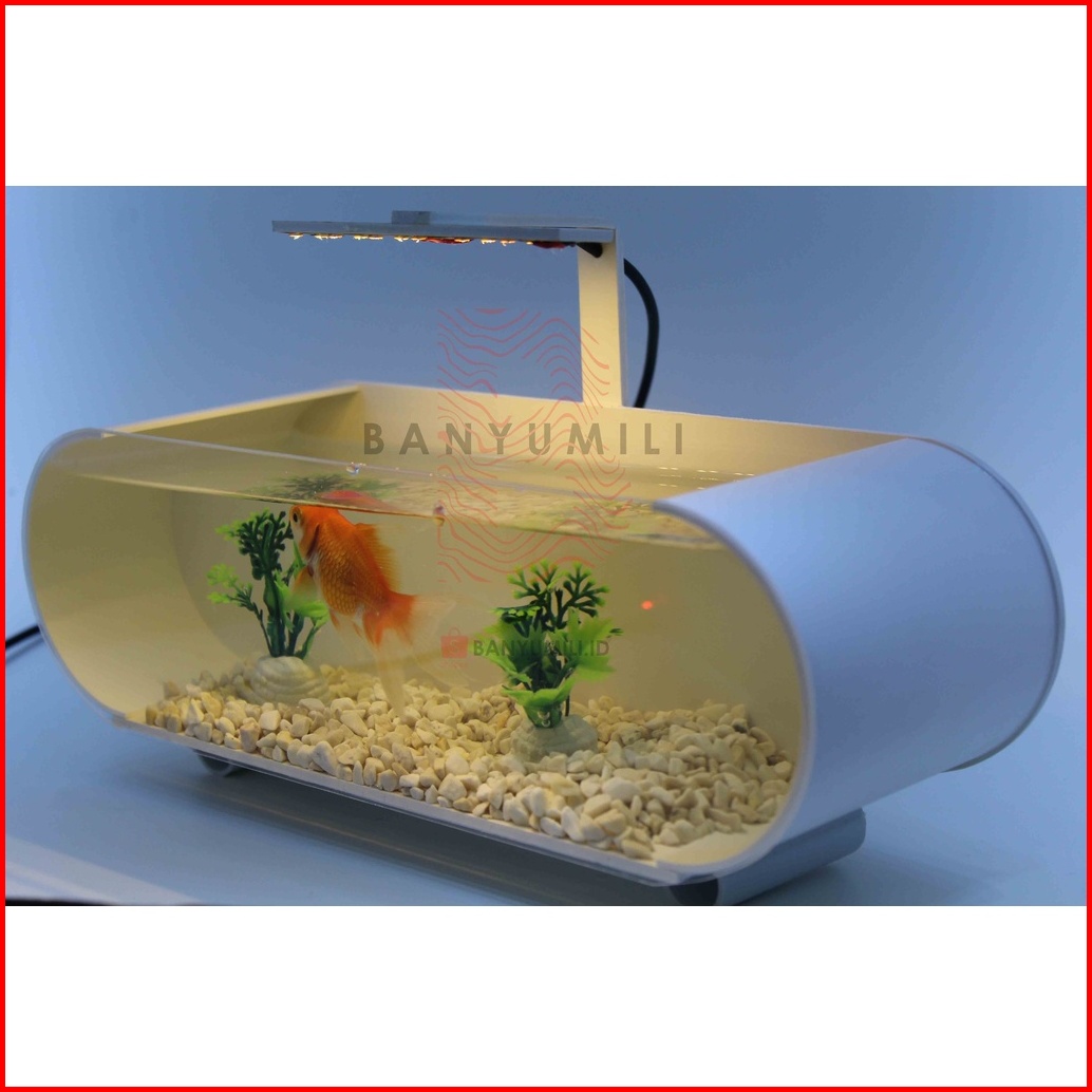 Aquarium Akuarium Mini Ikan Hias Full Set Lampu Led Kerikil Tanaman Hias