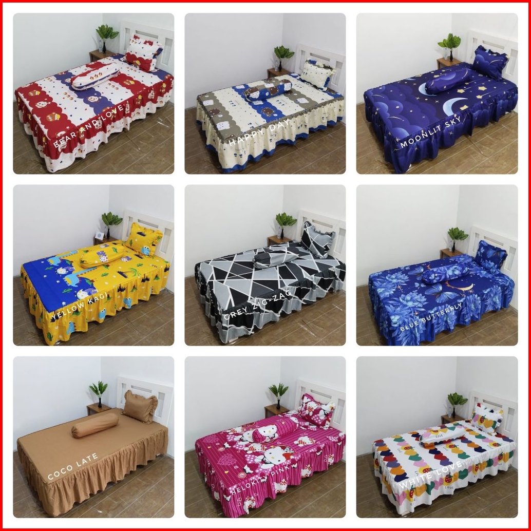 Merah, Hijau botol, Ungu Lilac, Black famili, Hijau lumut, Biru terang, Biru navi, mocacino, Silver, 3D rainbow, Salemm, Dark gold, Unggu tua, Yellow kagi, Bear and love, Murbel purple, Bigg Doraemon, Abu tua, Blue bulan bintang, Lemon, Pink fanta, Blue ferii, Sanyu rosee, Grey keramik, Coklat tua, Star night, Heppy day, Ubin flamingo, Doraemon tidur, Helokiti pink, Drak pink, Jungle blue, White love, Hitam pekat, Kotak hitam, Blue buterflay, Coco late, Cream famili, Black dinno