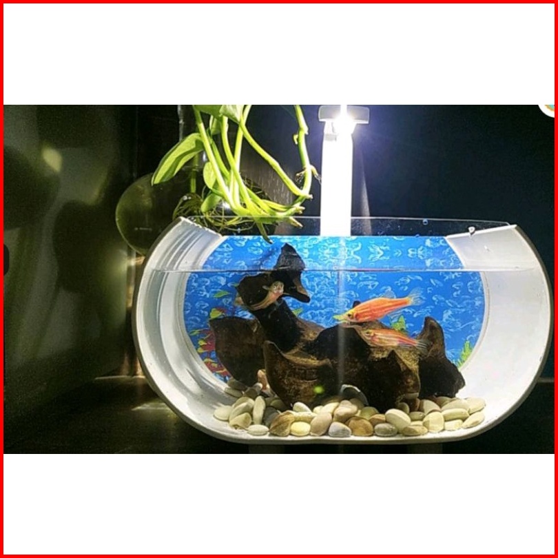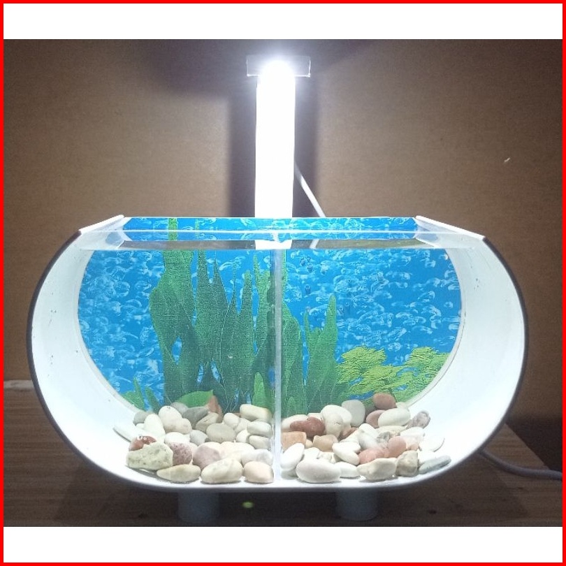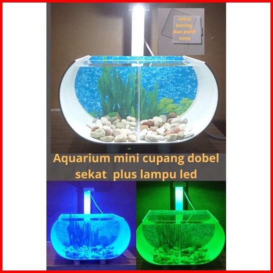 Aquarium Mini Ikan Cupang Dobel Sekat Akrilik Plus Lampu