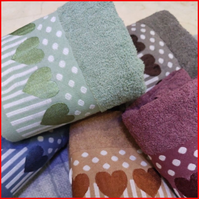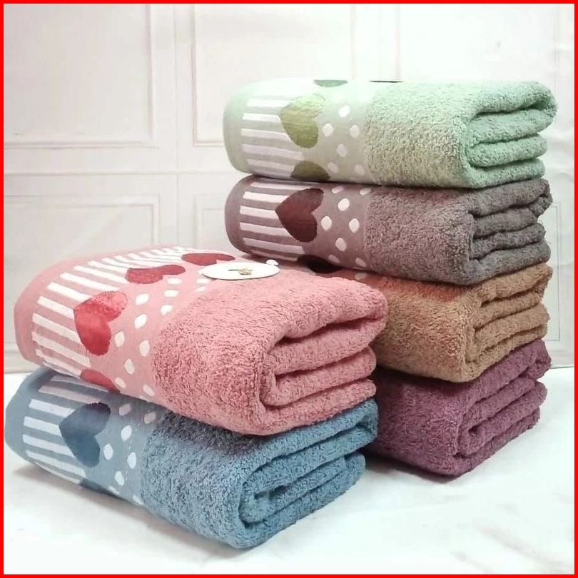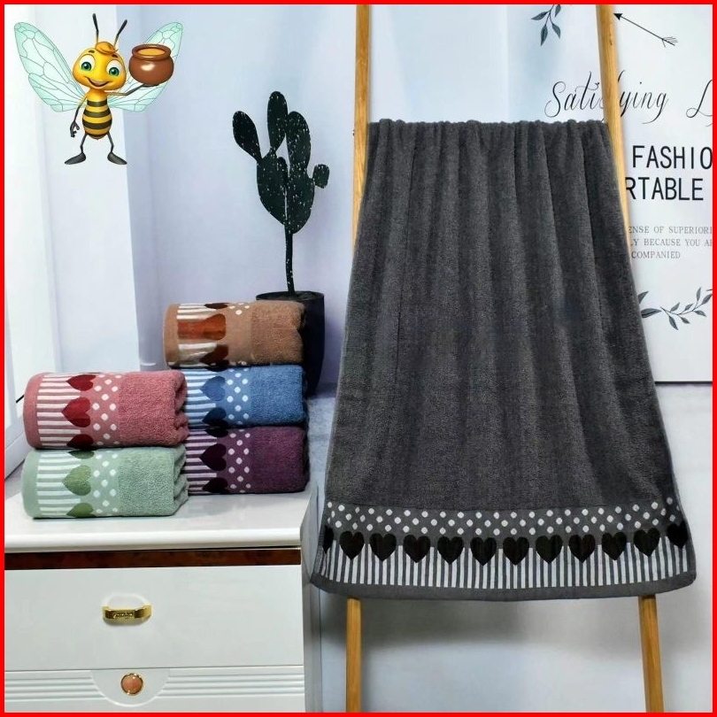 Handuk Mandi Dewasa Katun List Hati Size Besar 70x140cm-handuk Mandi Dewasa-handuk Mandi Menyerap Air