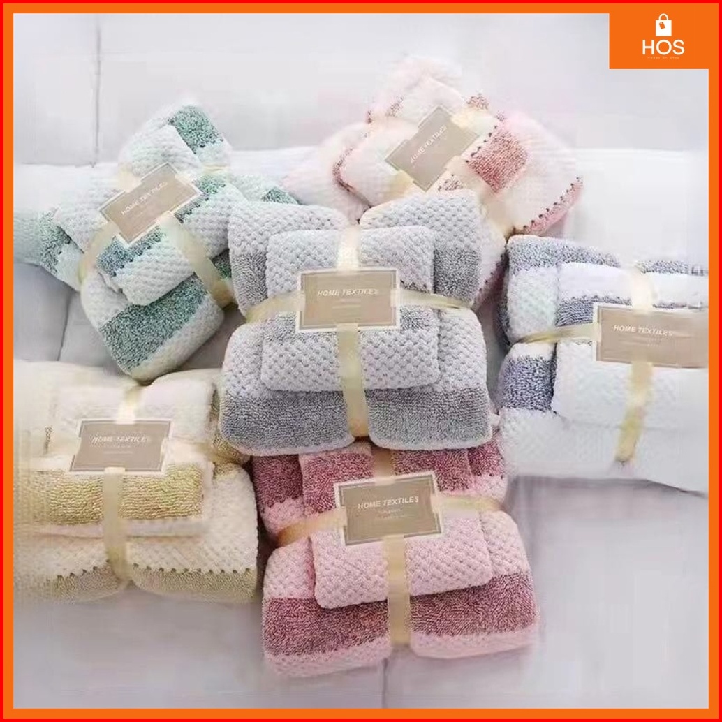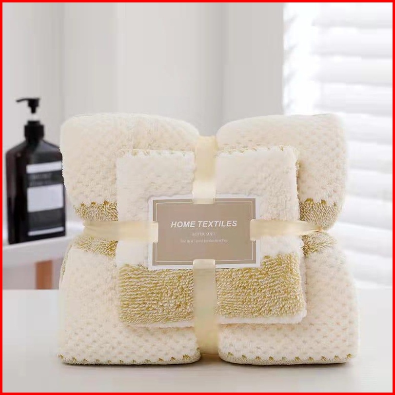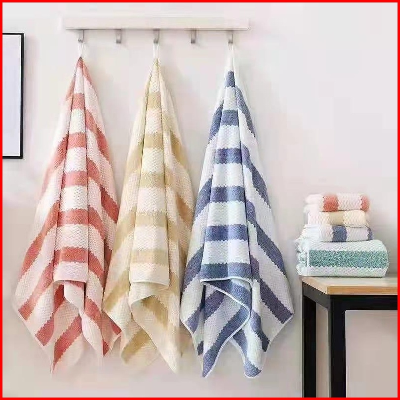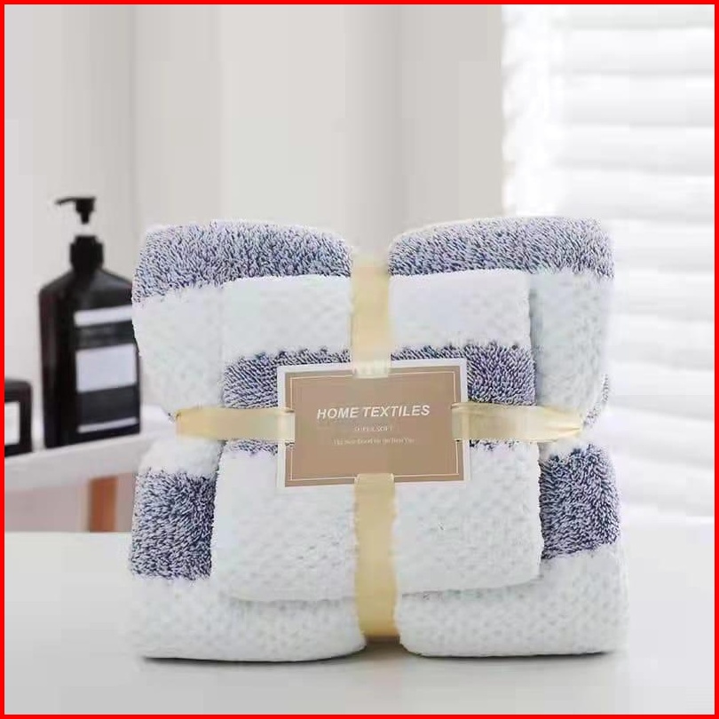 Handuk 2in1 Motif Garis Terbaru 1set Isi 2pcs L Happyonshop