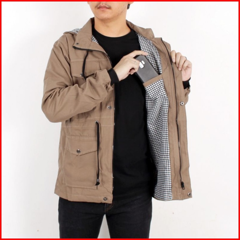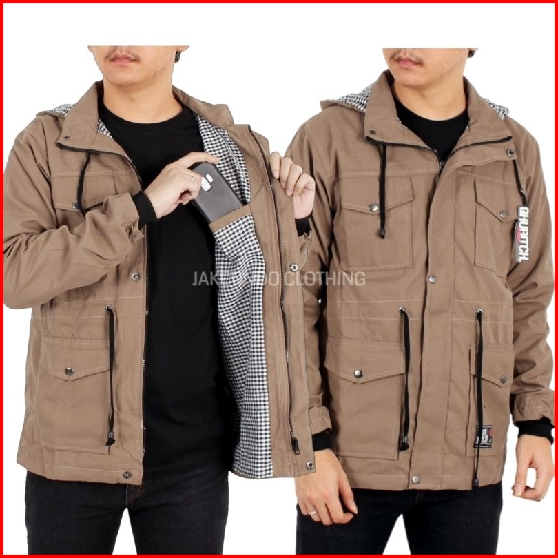 Jaket Parka Kanvas Premium - Jaket Pria Parka Acrilik Hoodie Bisa Dilepas - Jaket Casual Canvas