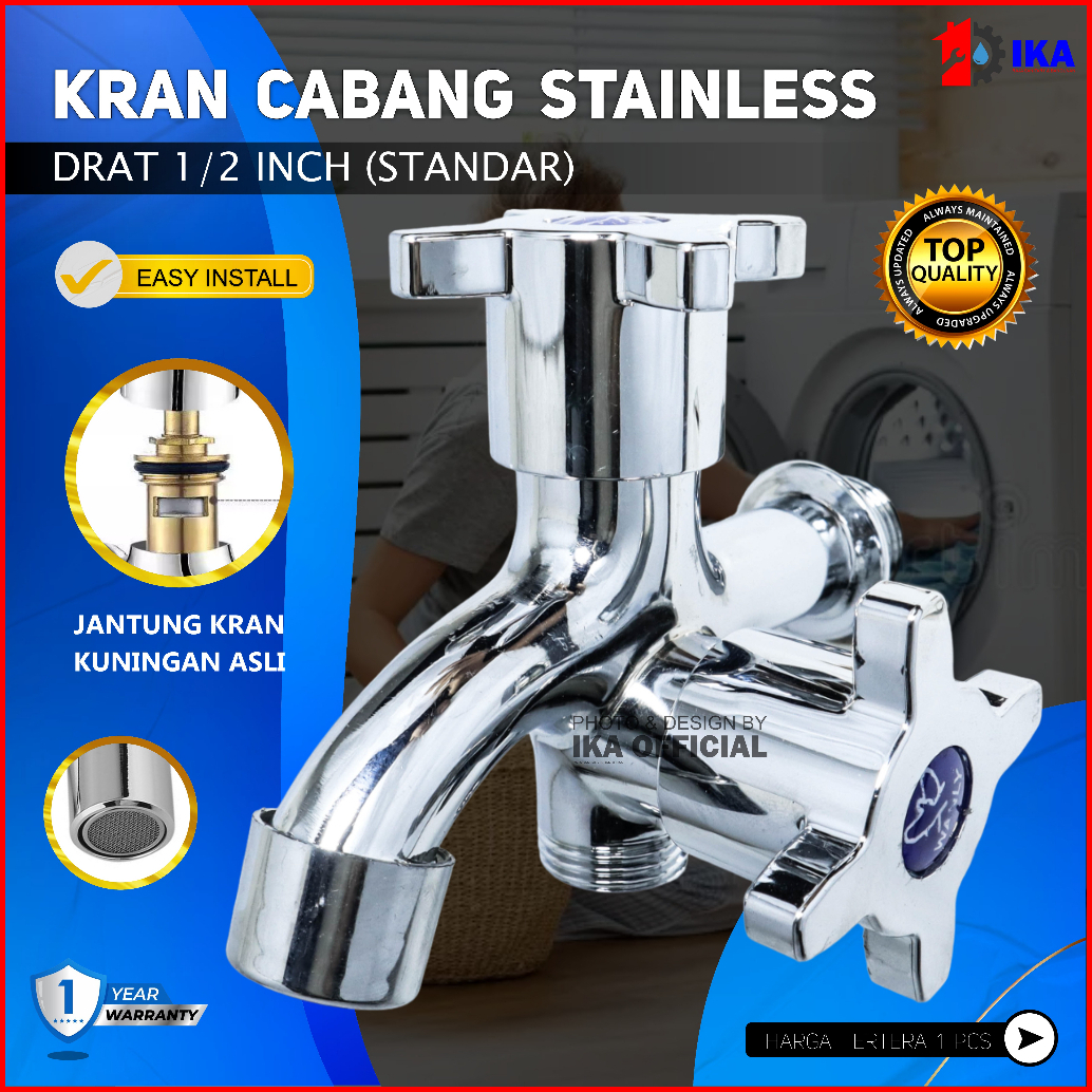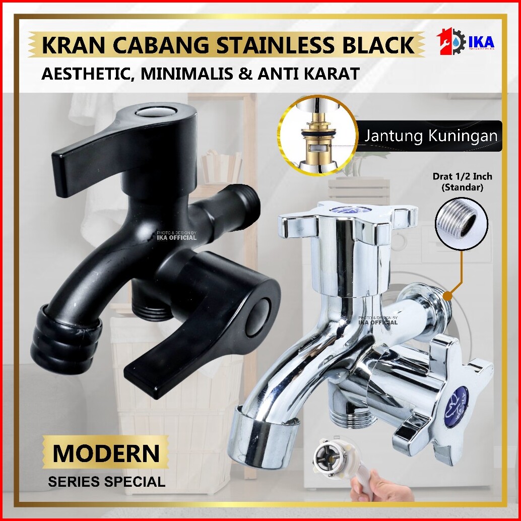 Kran Tembok Cabang Kran Cabang Keran Kran Shower Mixer Double Kran Cabang Shower 2 - Kran Double Engkol Kran Stainless T