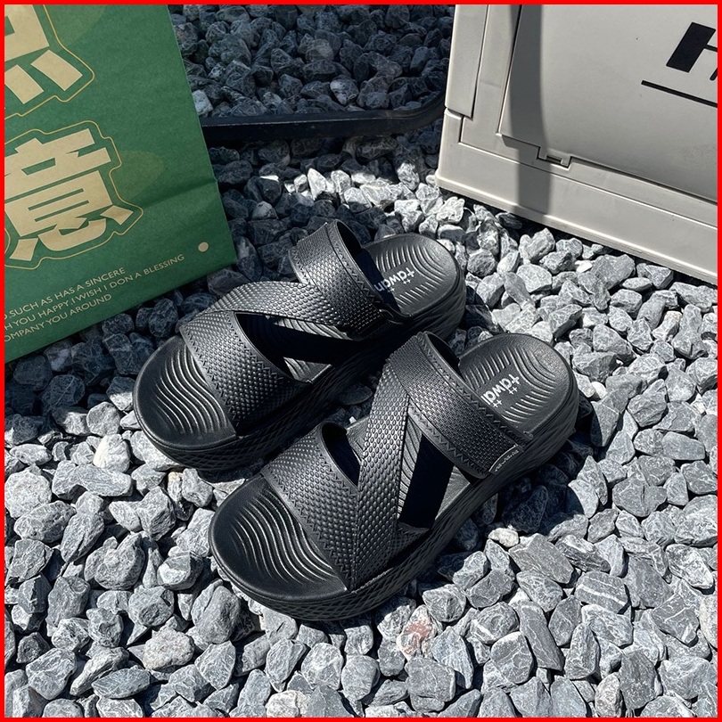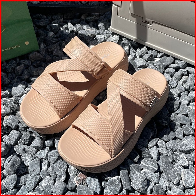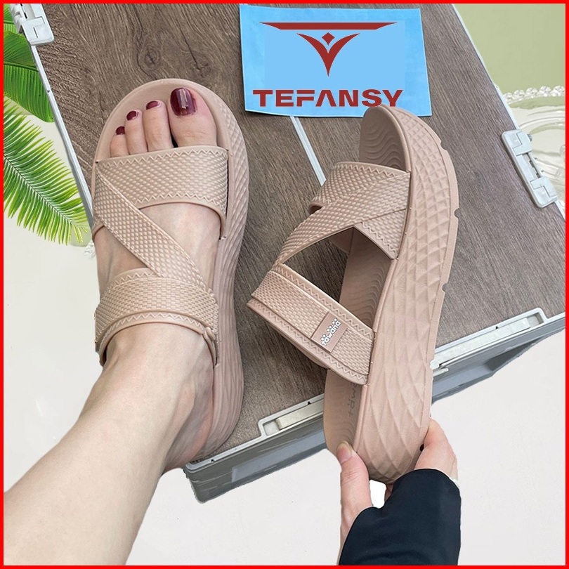 Tefansy Sandal Wanita Karet Jelly Wedges Tebal Bahan Elastis Empuk Tali Belakang Motif Double Strap