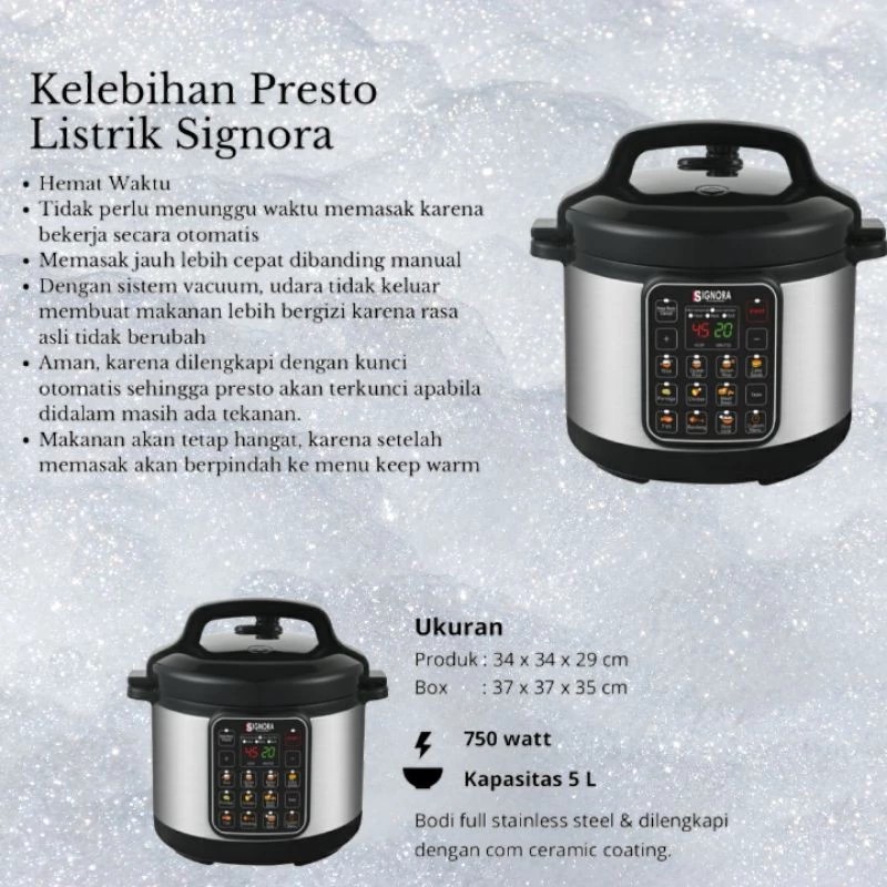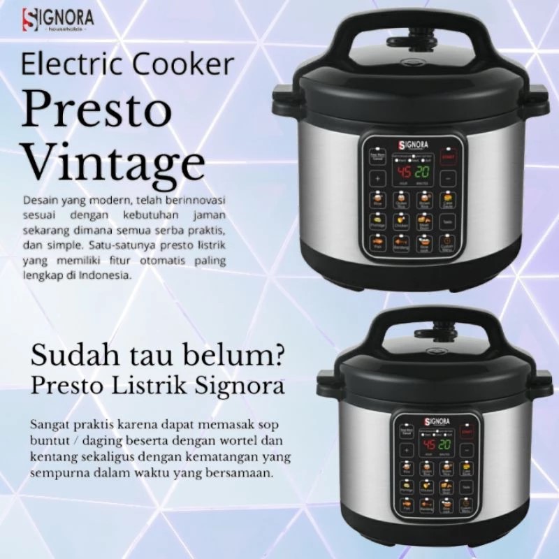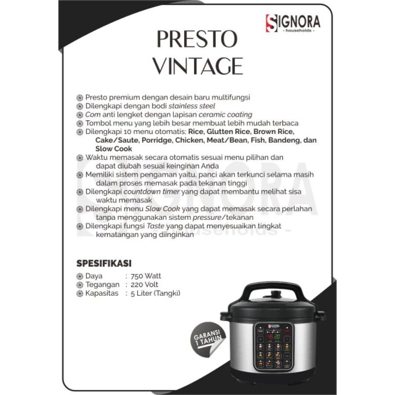 Presto Vintage 5 Liter Signora Berhadiah Langsung / Elektrik Pressure Cooker / Presto Listrik