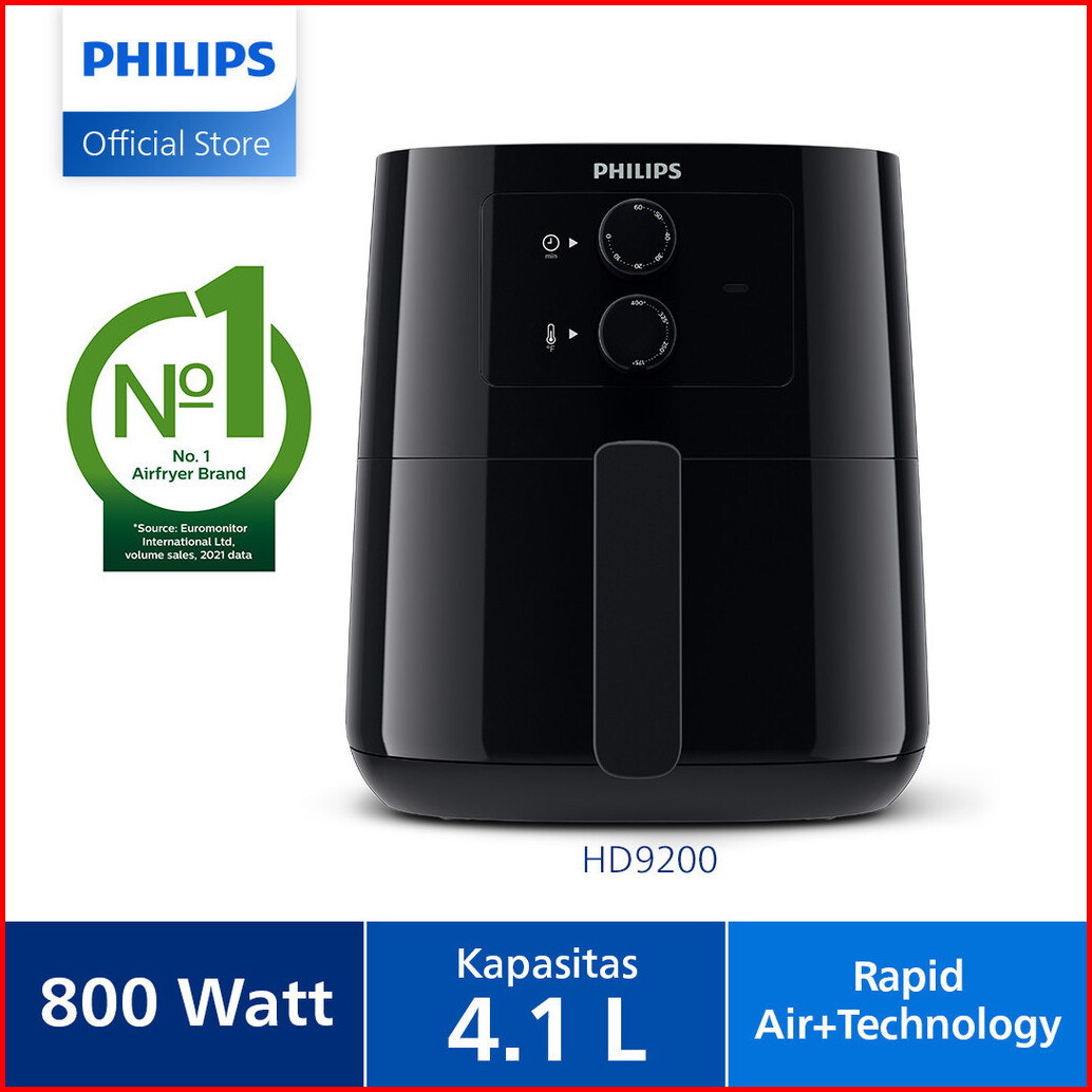 Philips Airfryer Terbaik Low Watt - 800 Watt - Hd9200 91 Analog - Multifungsi - Air Fryer Paling Bagus - 4.1 L - Hitam -