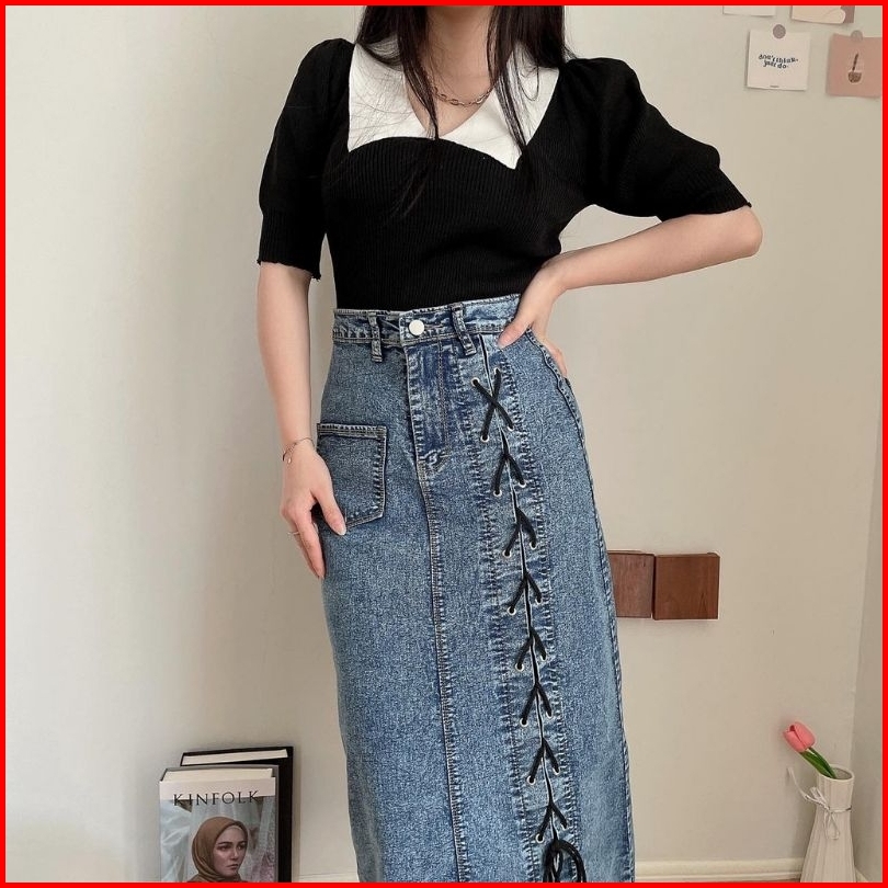 Rok Jeans Skrit Wanita - Highwaist Rok Nikita Jeans Korean Style
