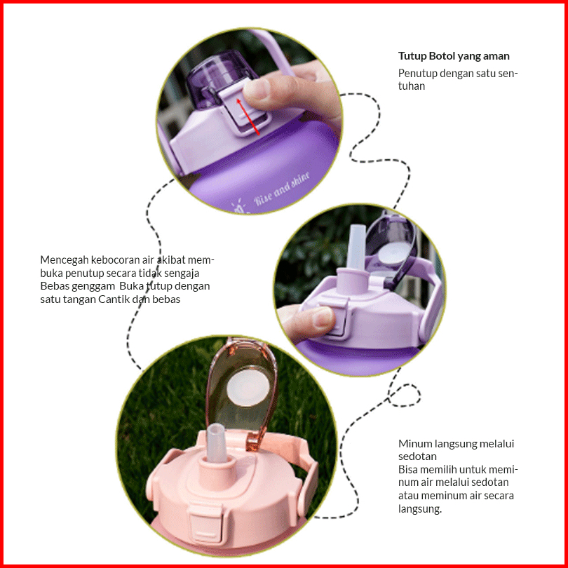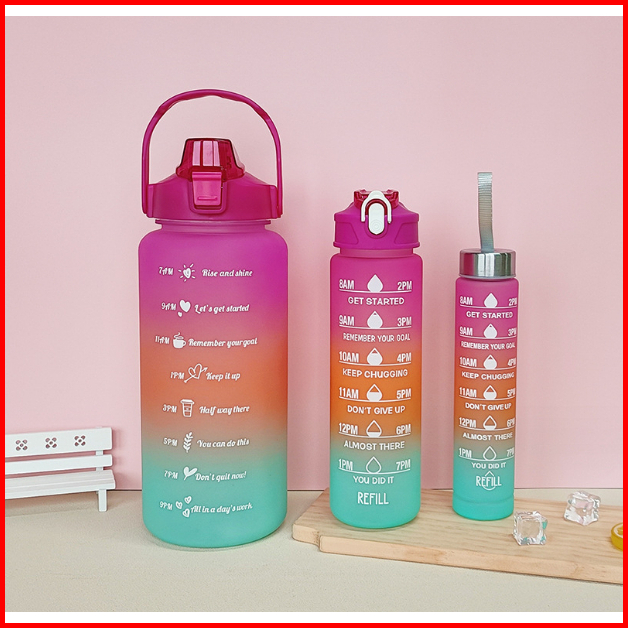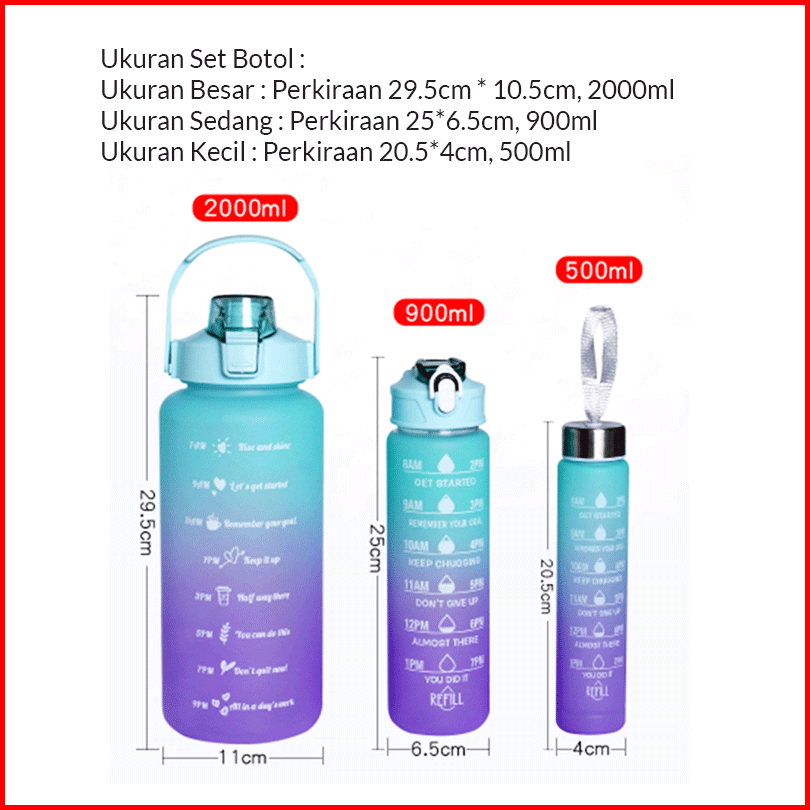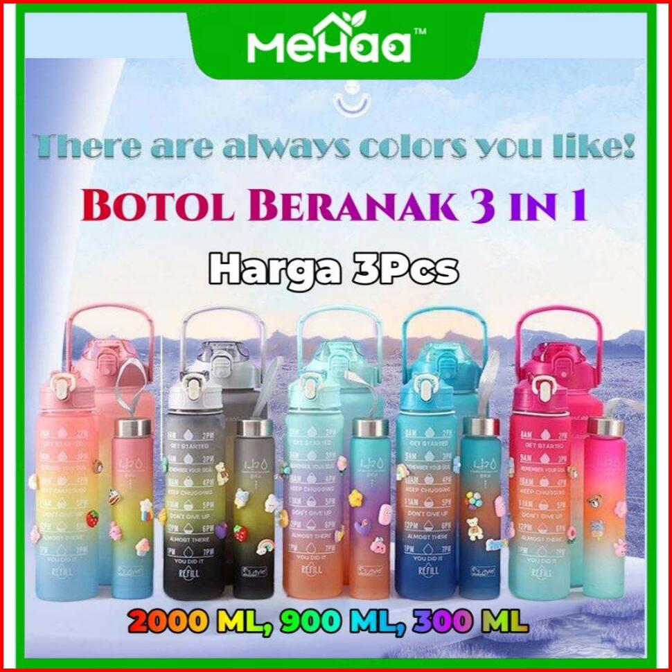 Mehaa 3in1 Botol Beranak 2l 900ml 500ml Motivational Water Bottle With Time Marker Straw