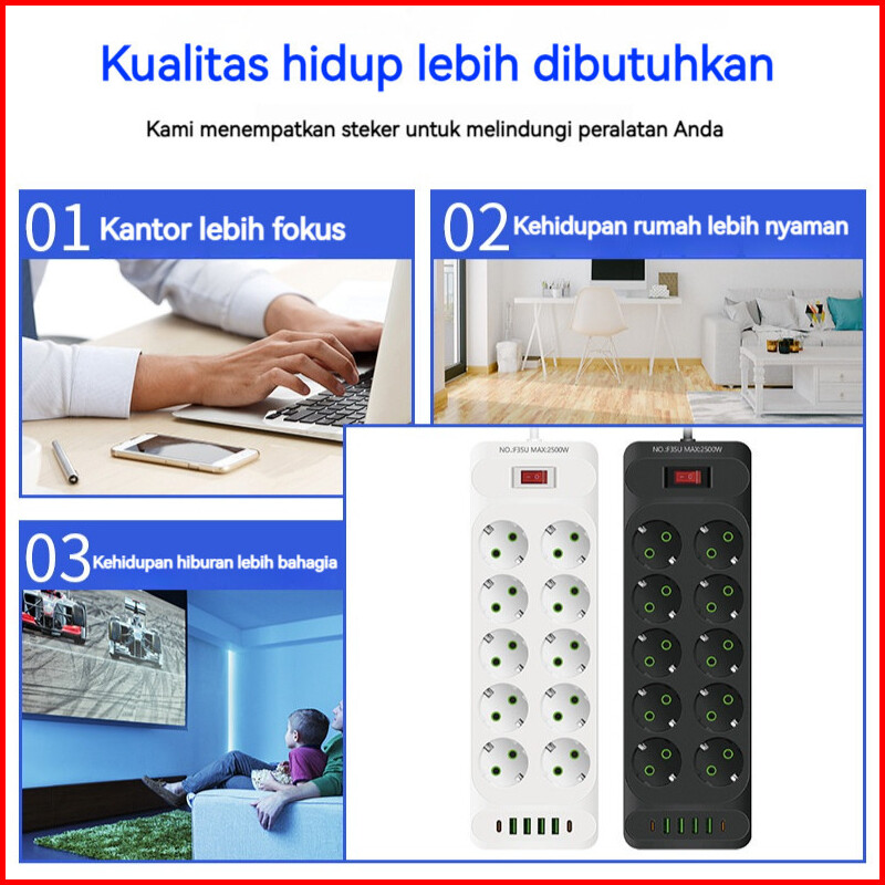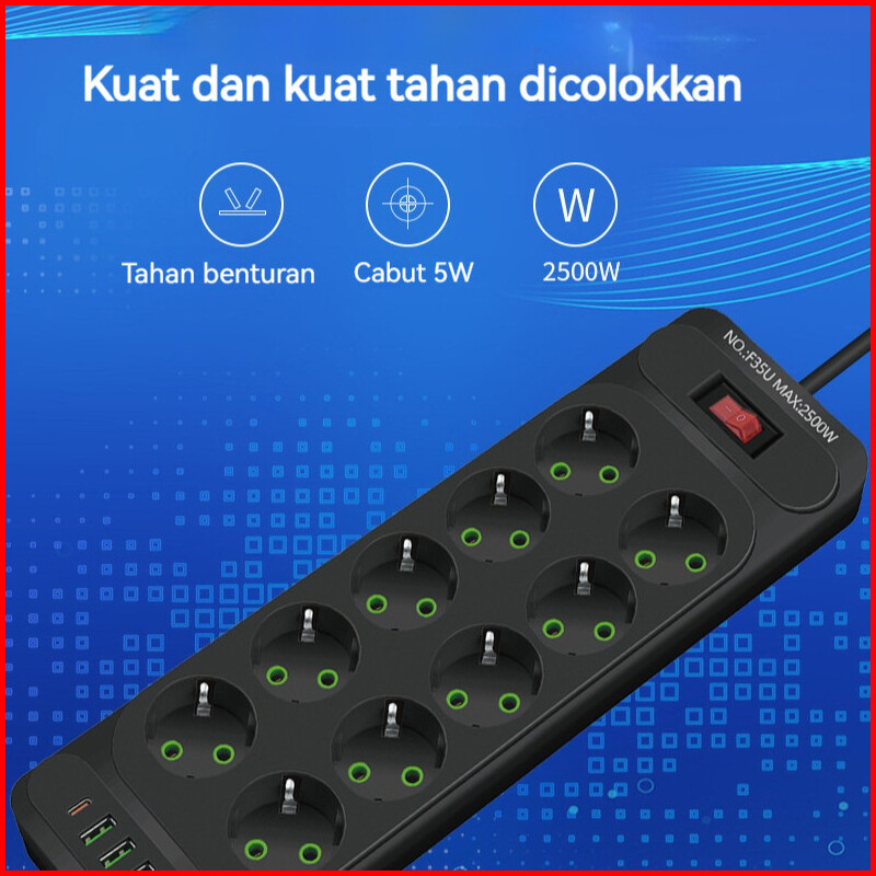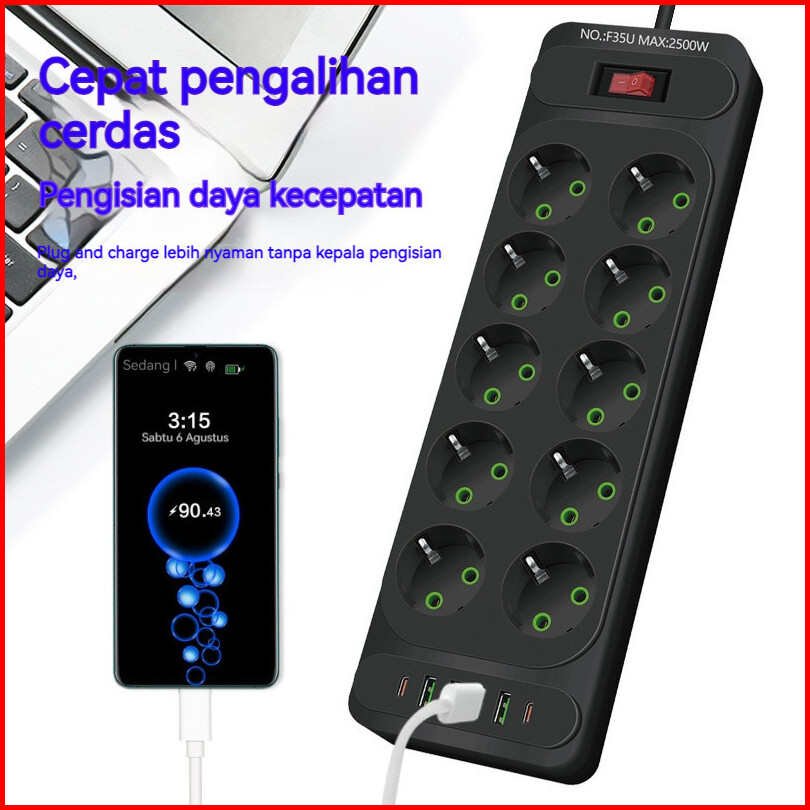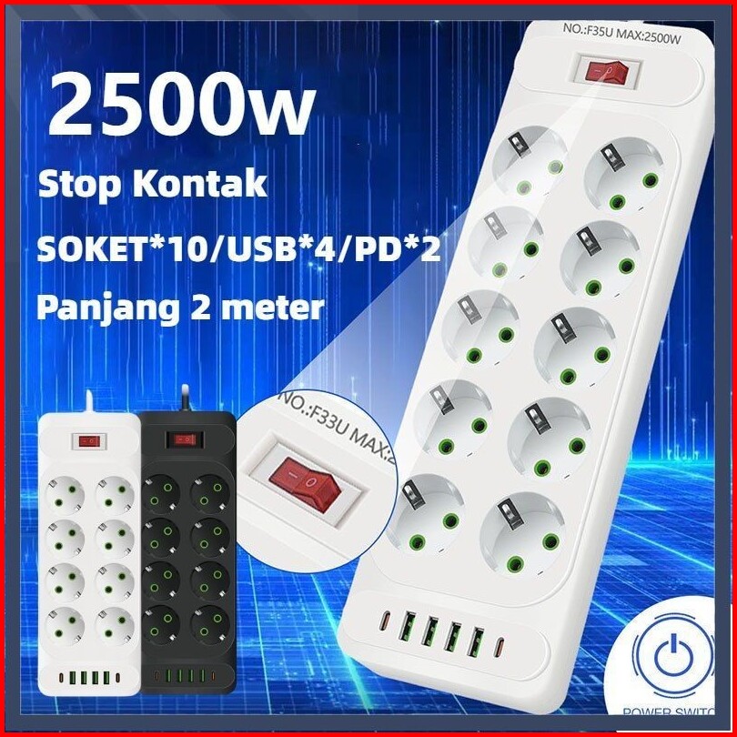 Cod2500w Power Socket Power Stop Kontak Stop Kontak Usb Kabel Socket Serbaguna Multiguna Panjang 10 Meter Dengan 10 Univ