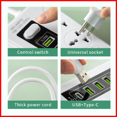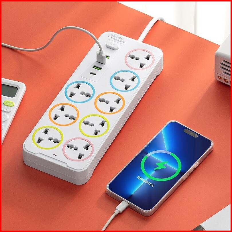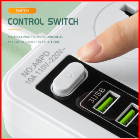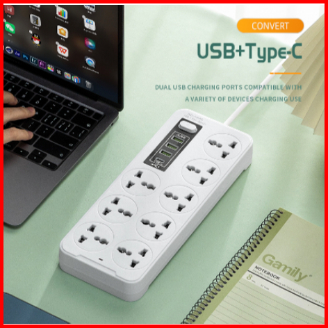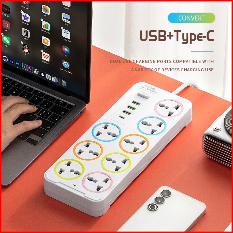 Eight Port 3 Usb 1 Type C Colokan Kabel Listrik Stopkontak Kabel Sambungan Kabel