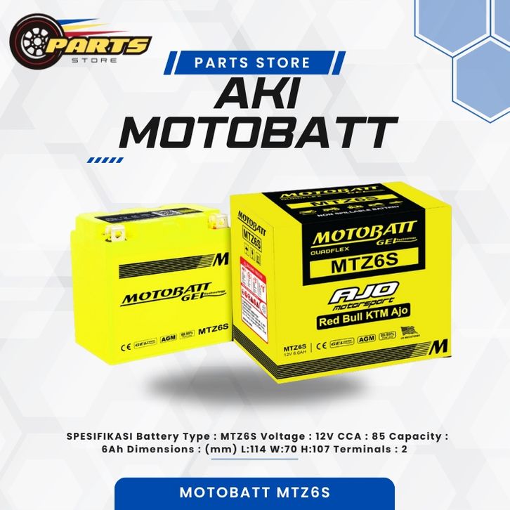 AKI MOTOR MOTOBATT SATRIA FU 150,VARIO 125,VARIO 150,PCX,SONIC 150,CBR 150 ACCU GEL MTZ6S BERKUALITAS ORIGINAL SNI