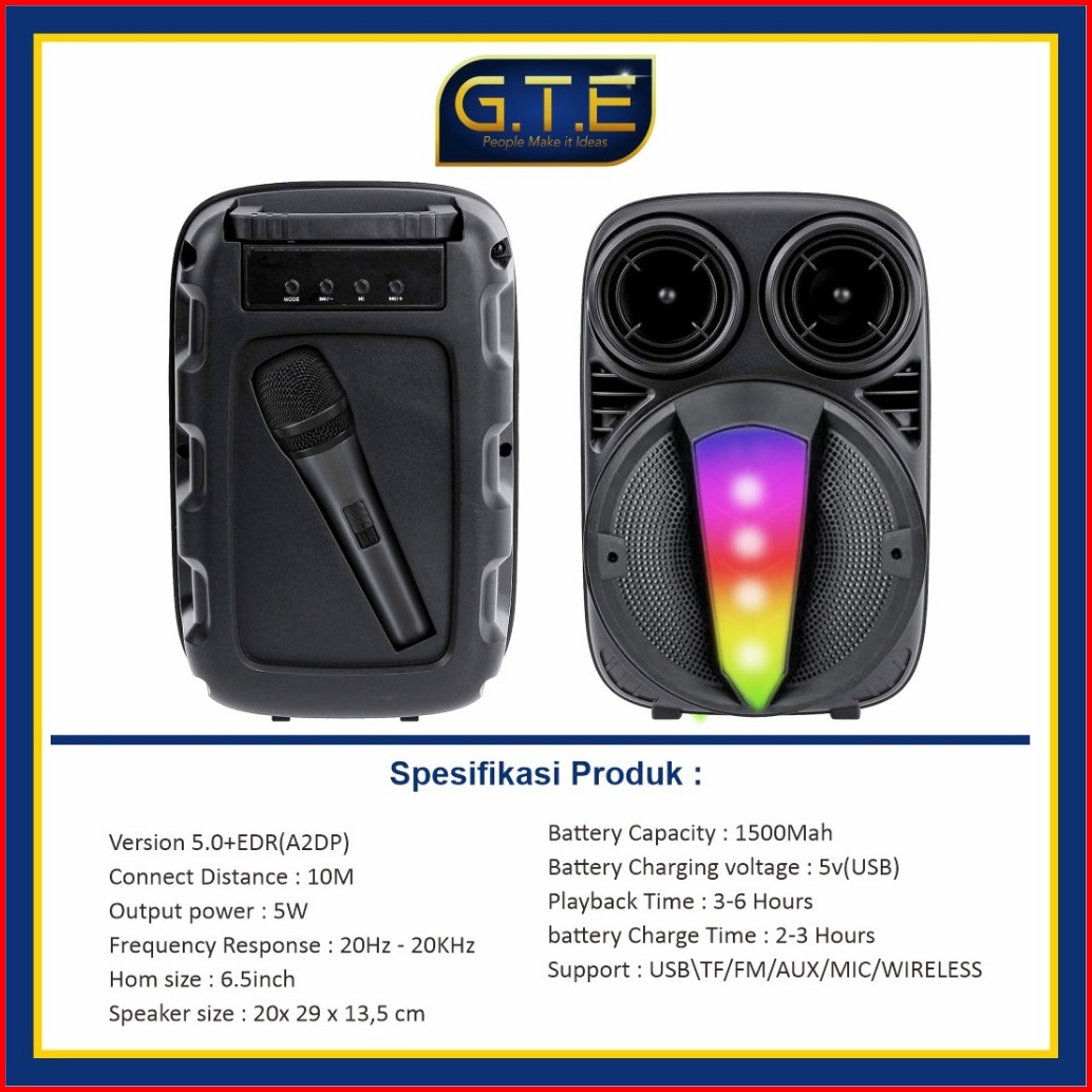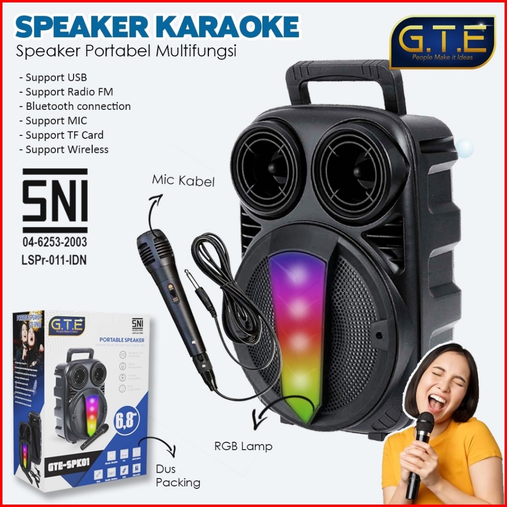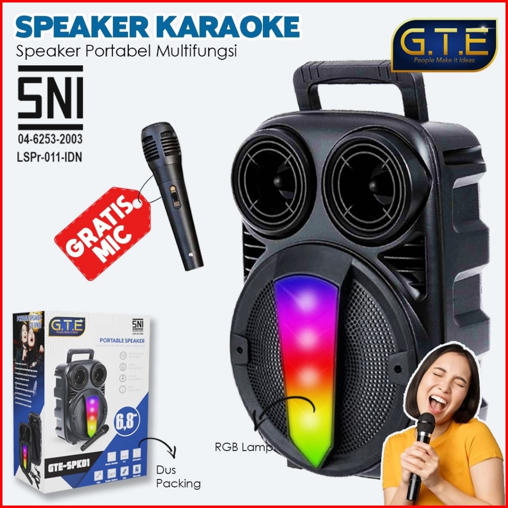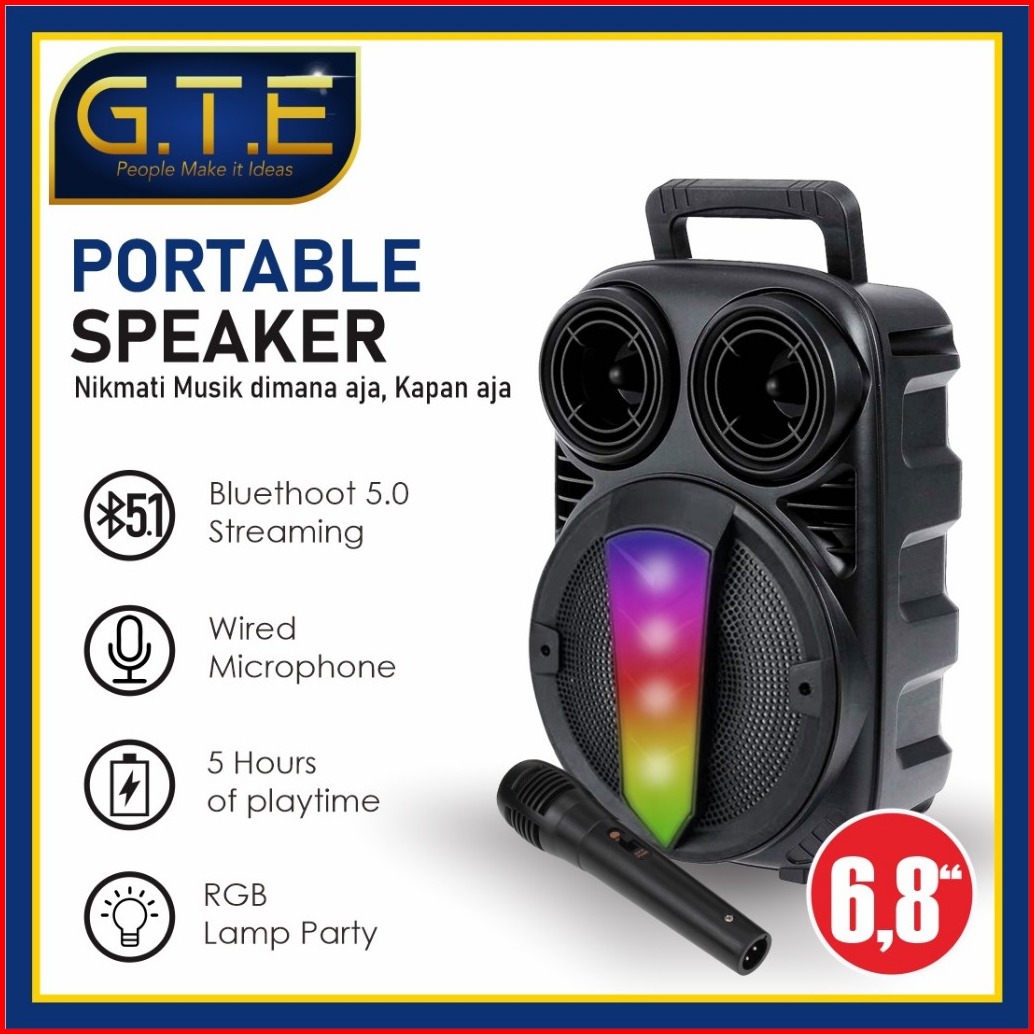 Gte Speaker Bluetooth Portable 6 8 Inch Gte-spk01 Plus Mic Speaker Karaoke Speaker