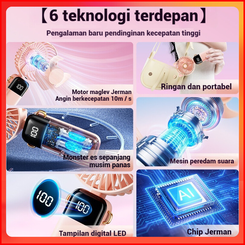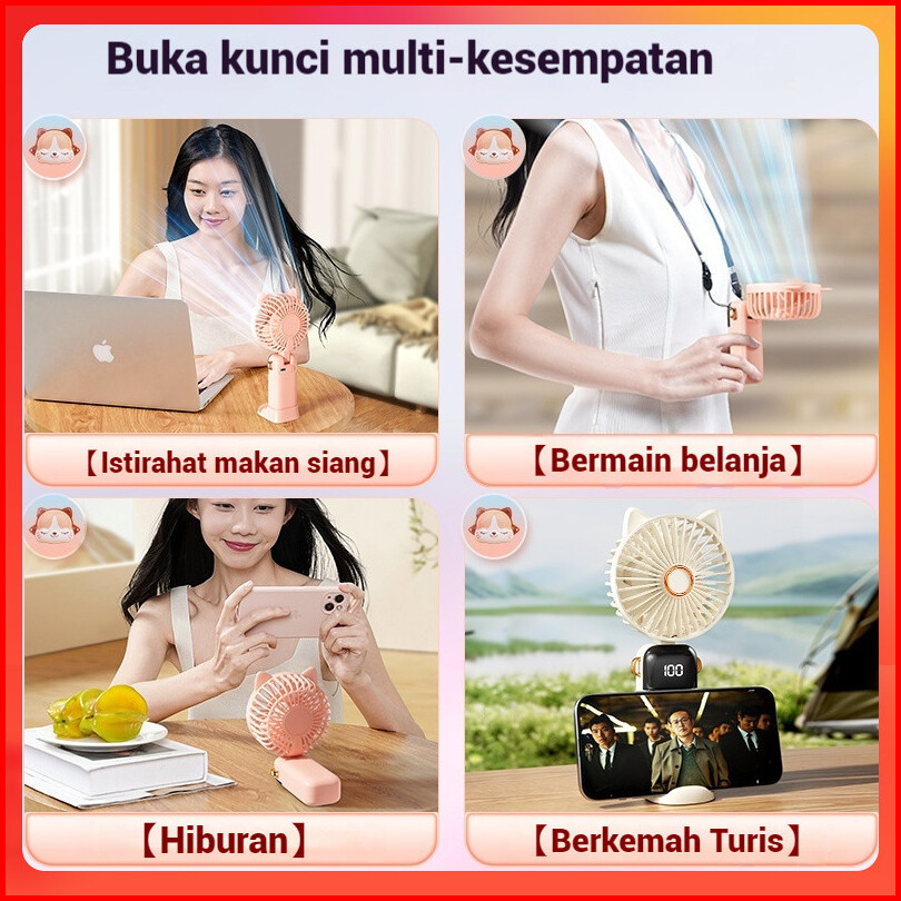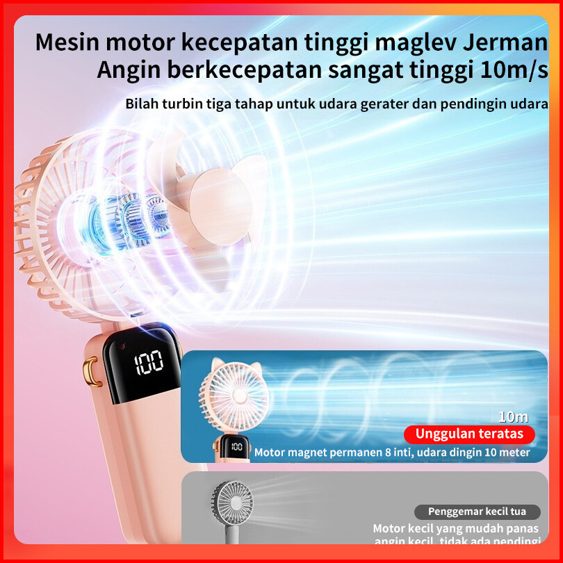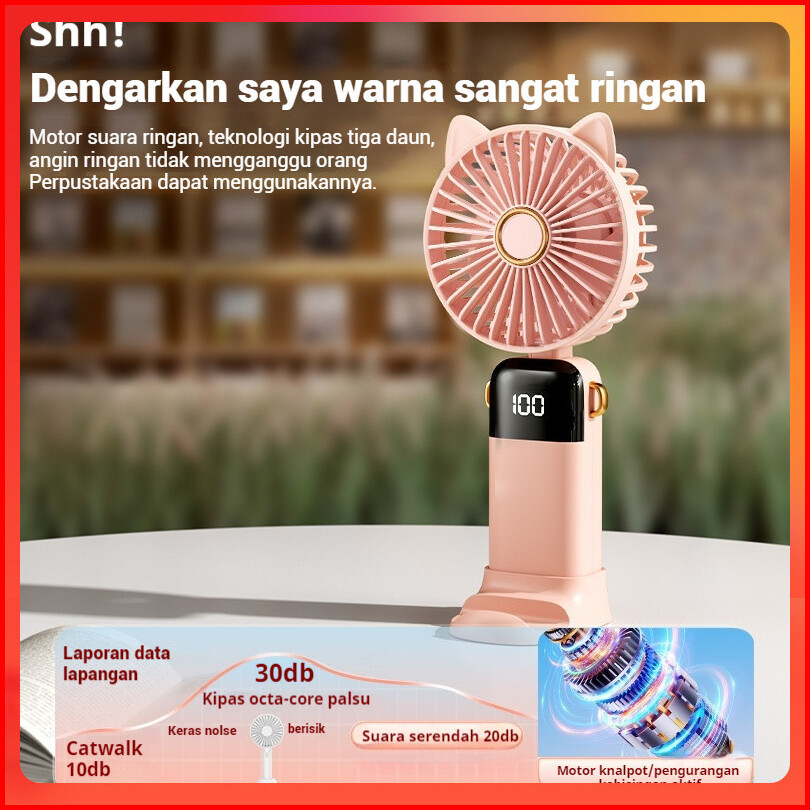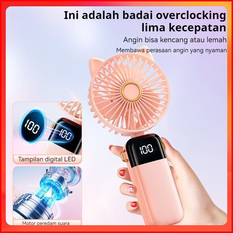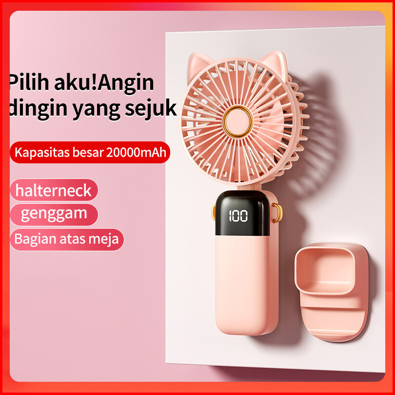 Sunnyday 2024 Kipas Angin Mini Portable Usb 20000 Mah Kipas Lipat Leher 5-speed Wind Led Display Telinga Kucing