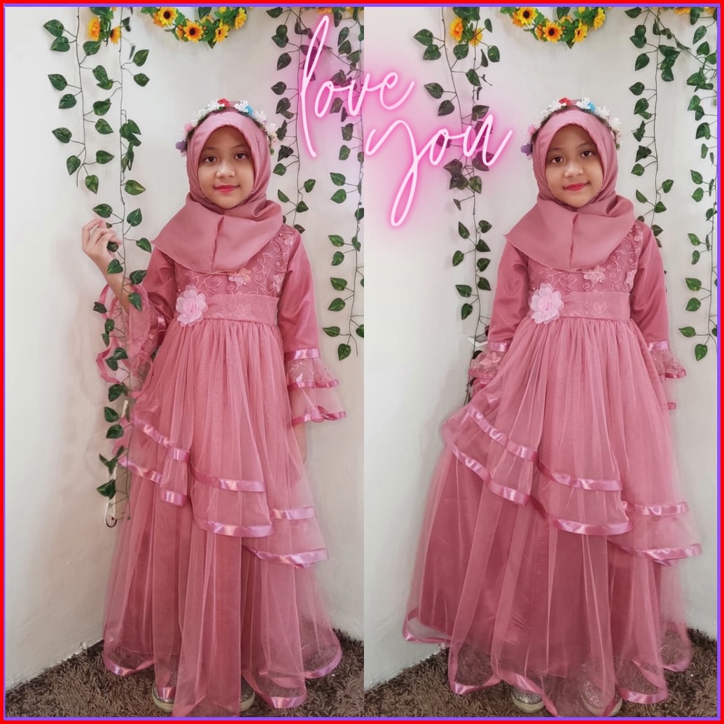 Itsme.collection Baju Pesta Anak Brukat Gaun Pesta Anak Muslim Mewah Umur 3 Tahun - 10 Tahun