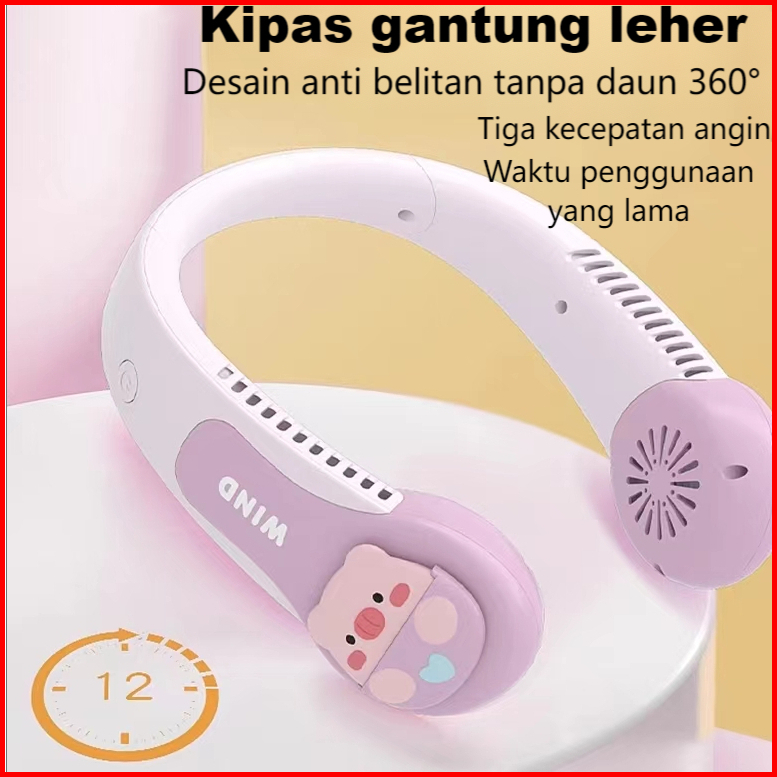 Kipas Angin Leher Portable Mini Hanging Bladeless Silent Hanging Neck Fan Usb Portable Digital Display Mini Kipas Tidak