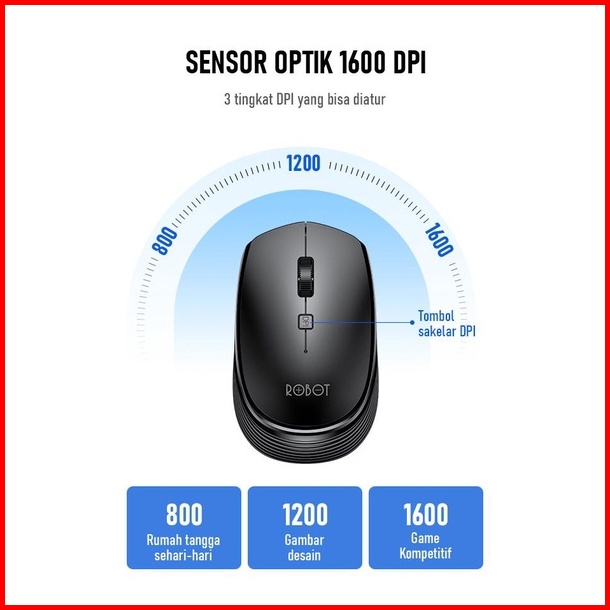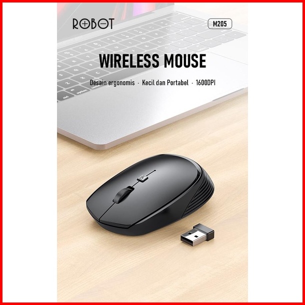 Robot M205 Wireless Mouse 2.4ghz Mouse 800-1200-1600 Dpi Black Robot Bluetooth Without Battery Original Garansi Resmi 1