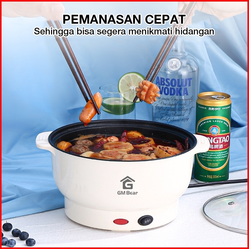 De Essential Panci Listrik Serbaguna 2 In 1 Beige 1225 Multifunction Electric Cooking Pot Stainless