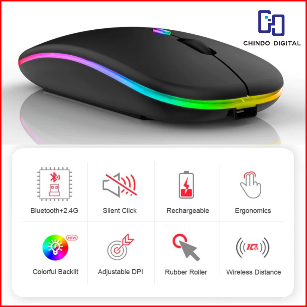 Mouse Bluetooth Rechargeable Wireless Mouse Ultra-thin Silent Led Colorful Backlit