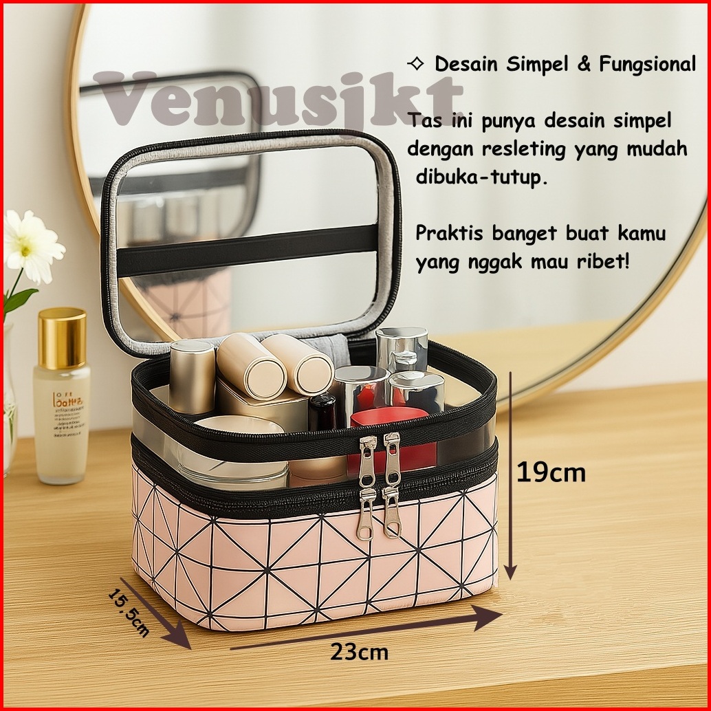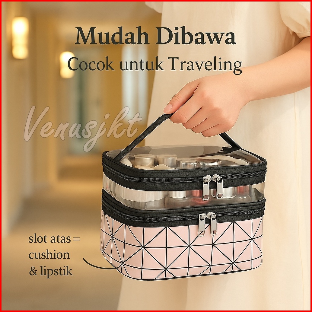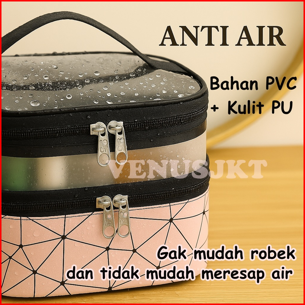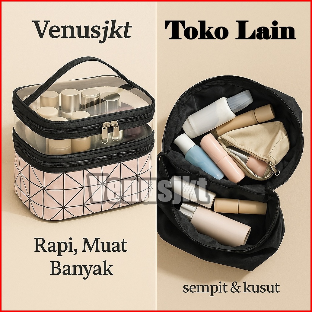 Venusjkt - Tas Kosmetik Makeup Travel Double-layer Transparan Anti Air Pouch Makeup Besar Muat Banyak Tas Make Up Pvc Pr
