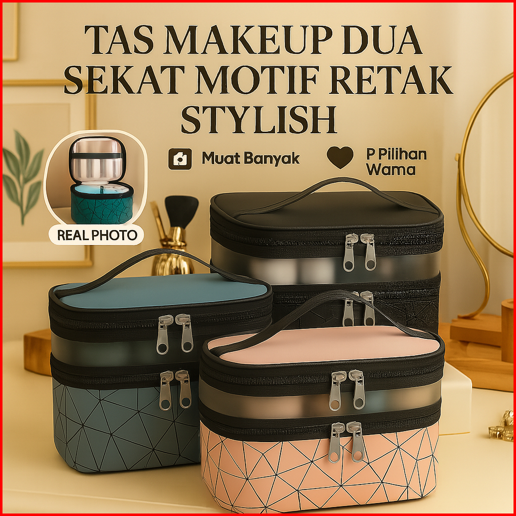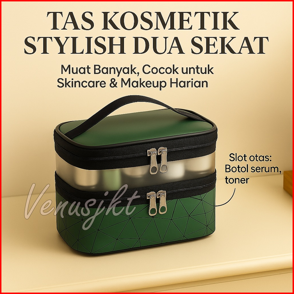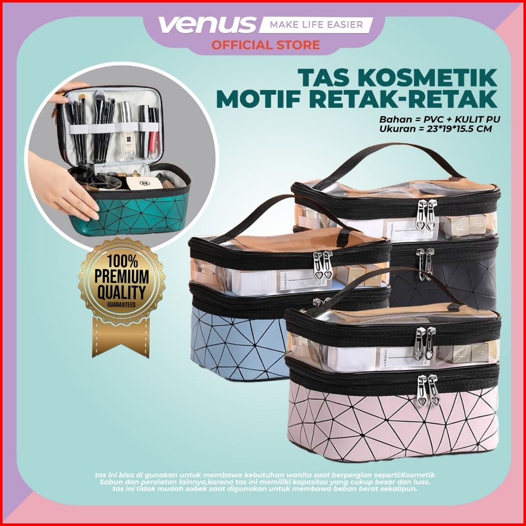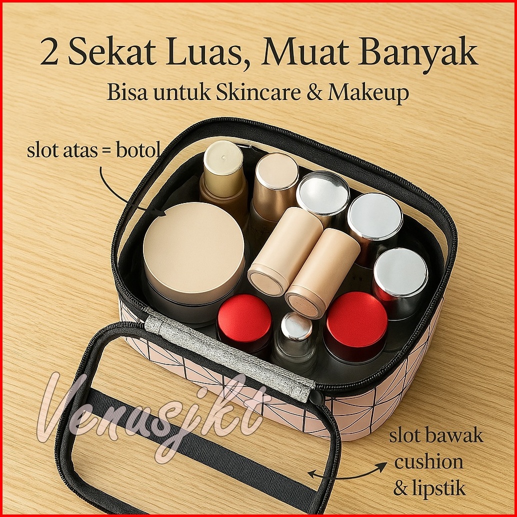 Venusjkt - Tas Kosmetik Makeup Travel Double-layer Transparan Anti Air Pouch Makeup Besar Muat Banyak Tas Make Up Pvc Pr