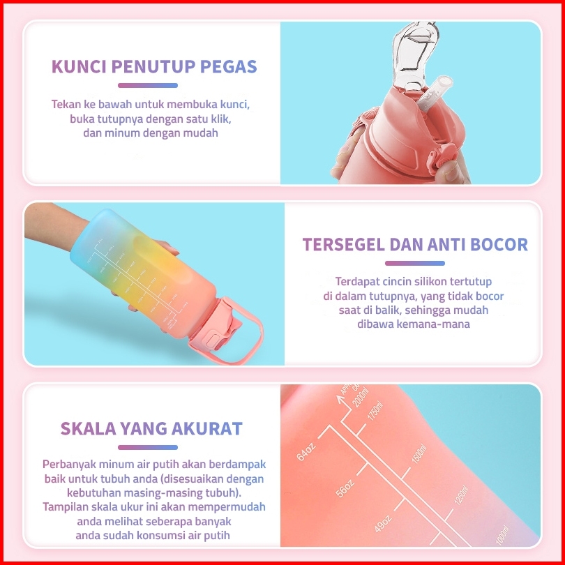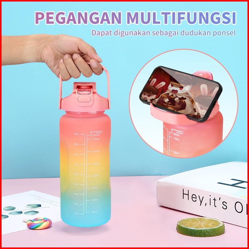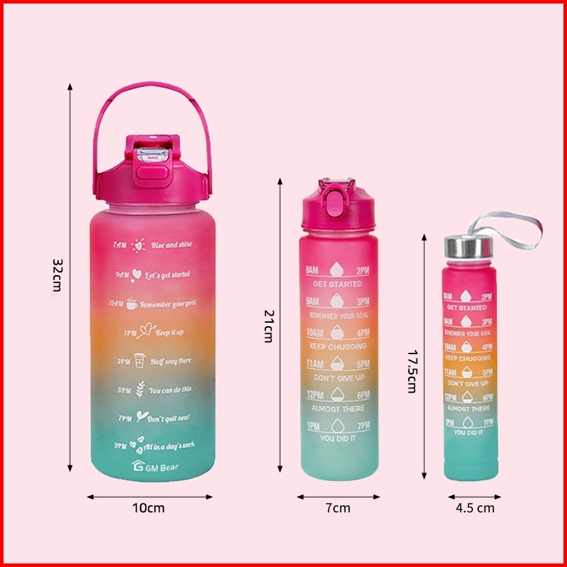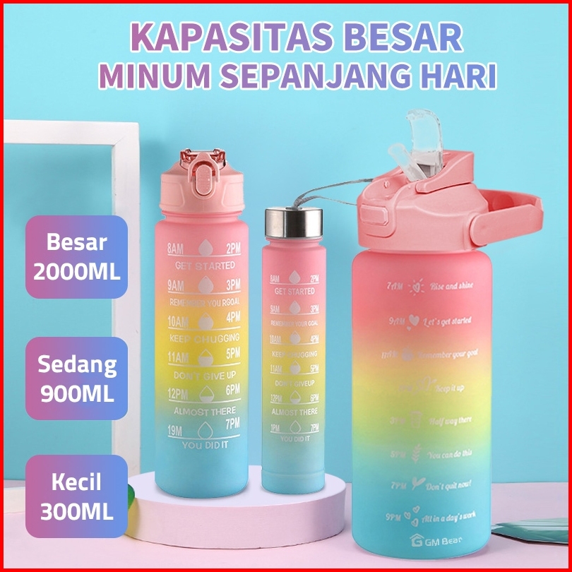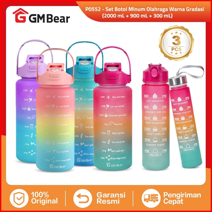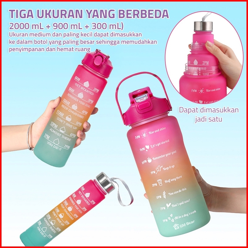 Gm Bear Set Botol Minum Olahraga Warna Gradasi 2000 Ml 900 Ml 300 Ml P0552 - 3in1 Sports Water Bottles Gradient Colour