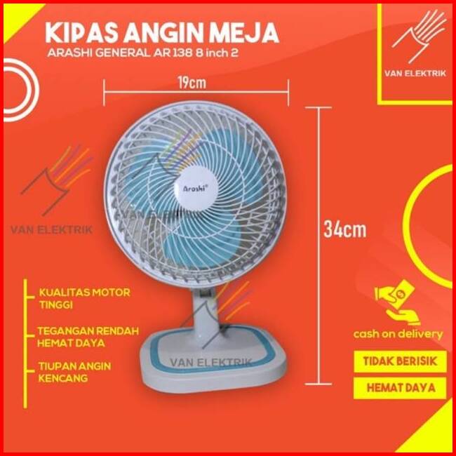 Arashi General Fan Ar 138 Kipas Angin Duduk Meja Deskfan 8 Inchi