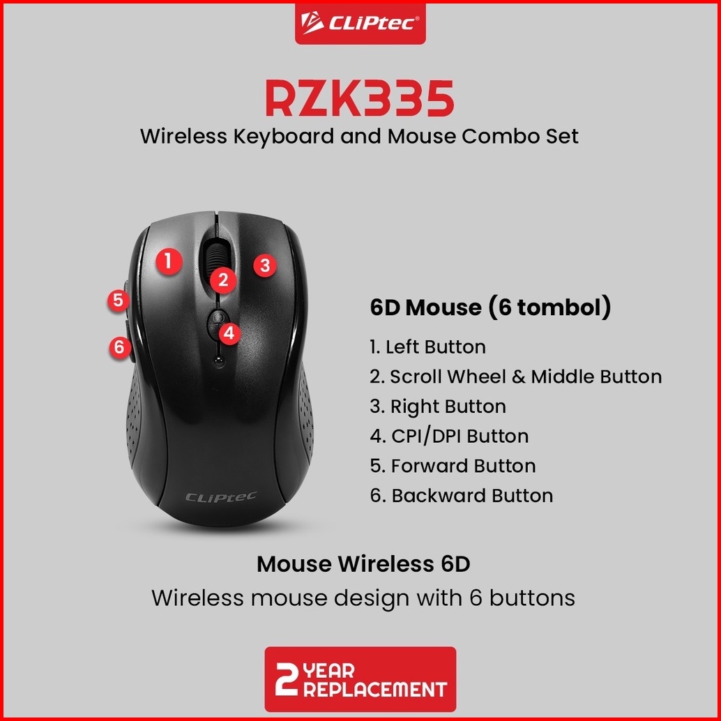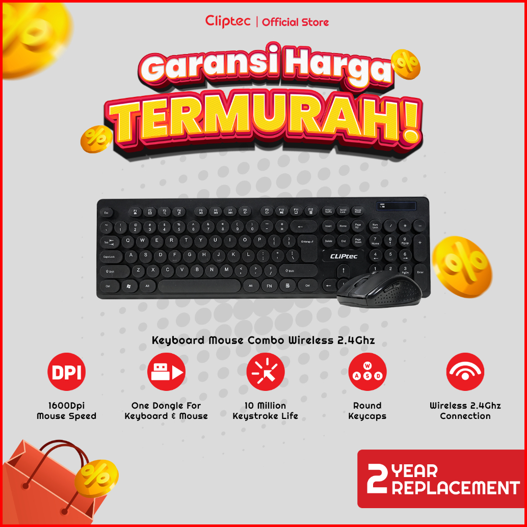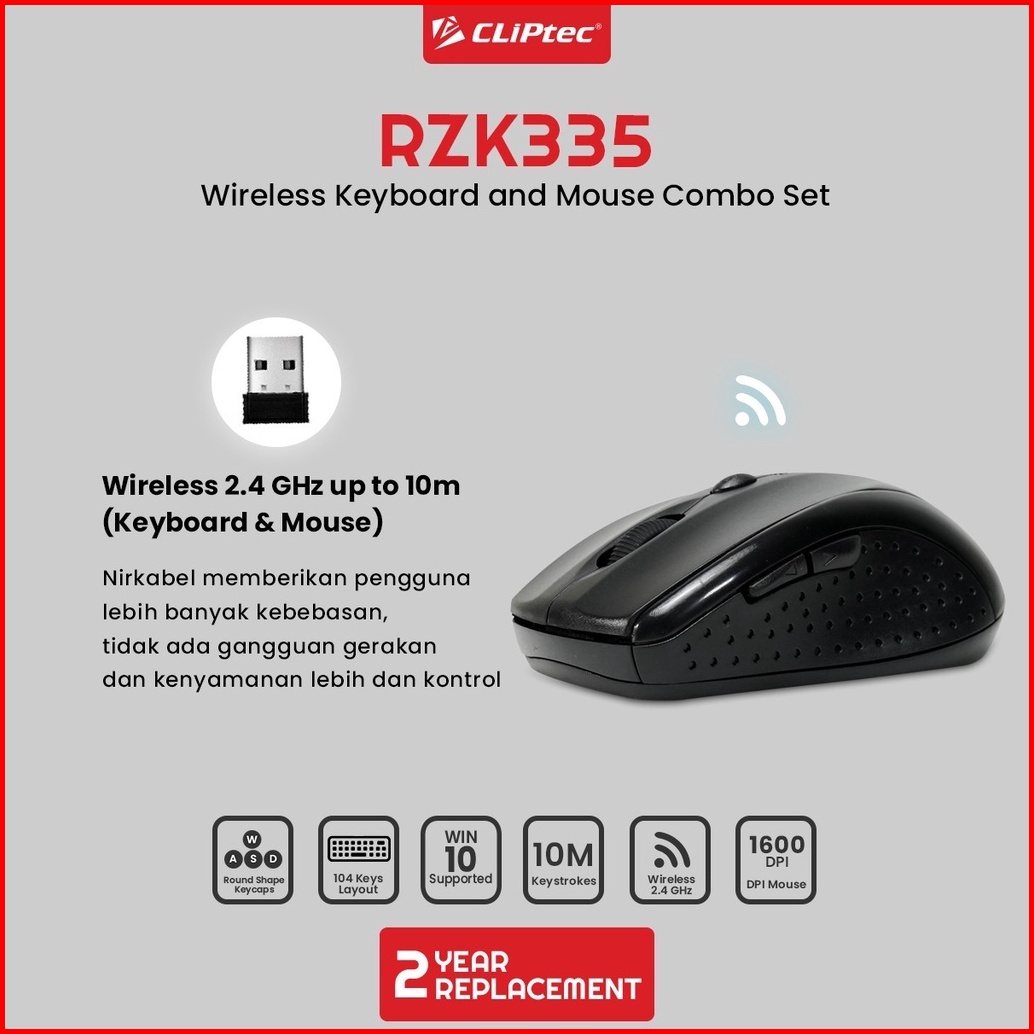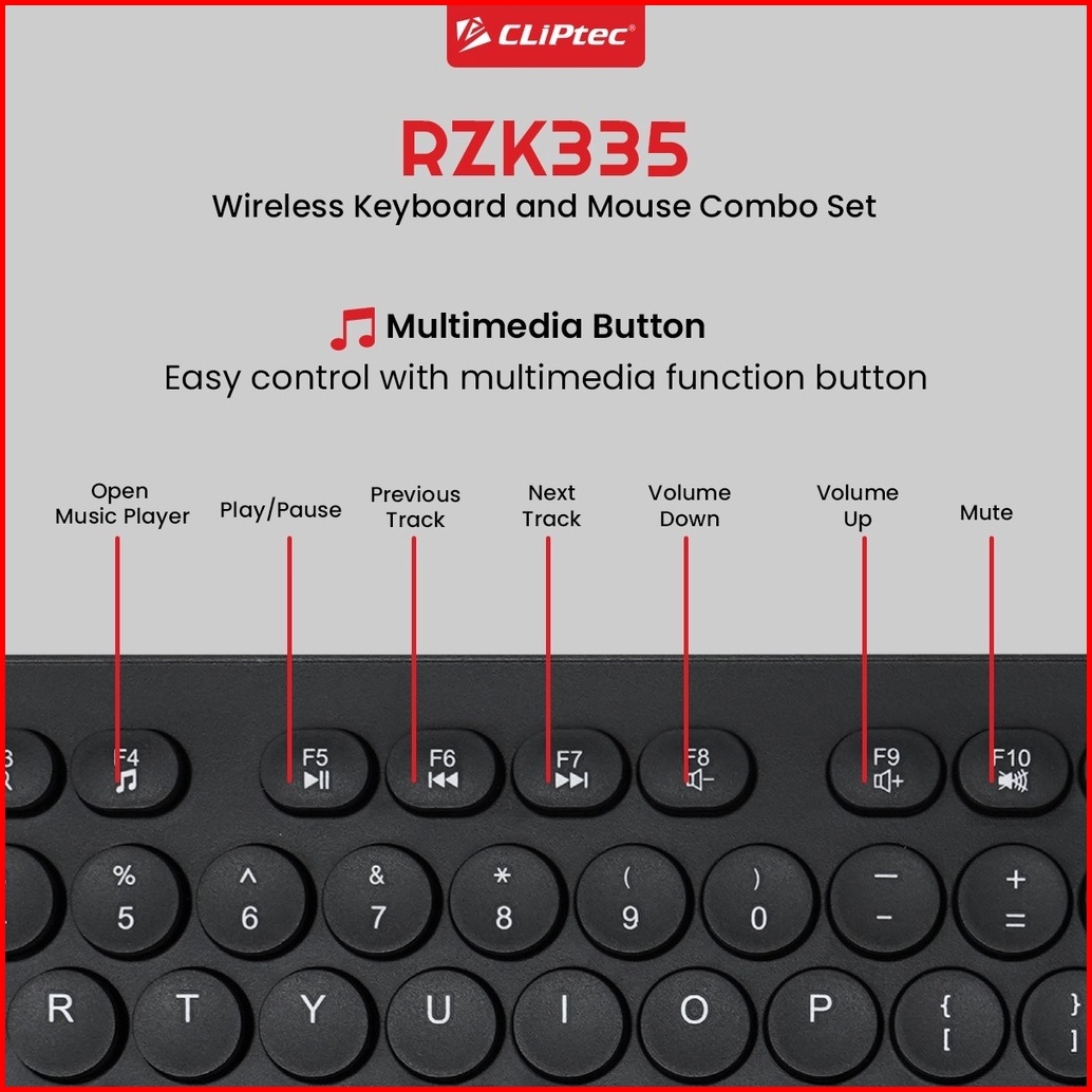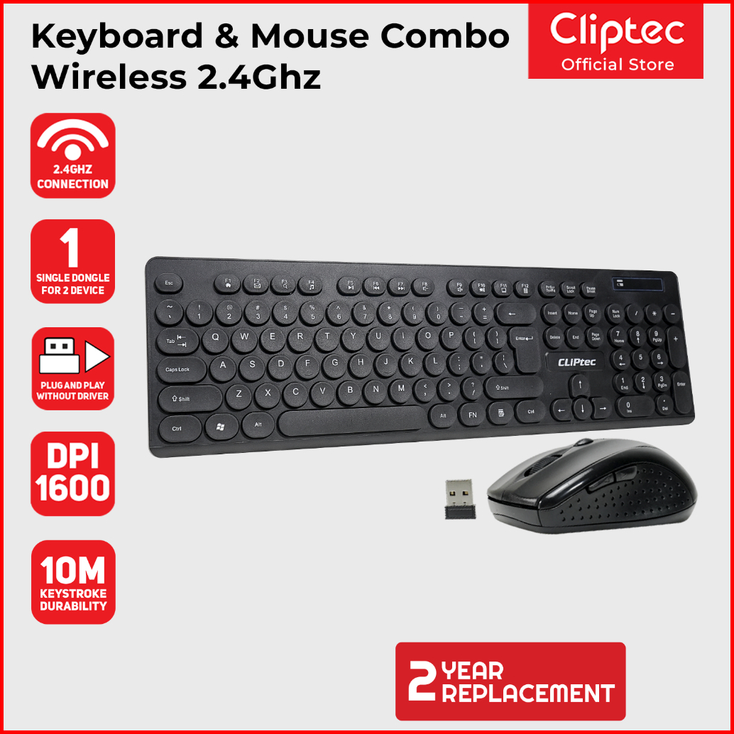 Keyboard Mouse Wireless Combo Set Multimedia Cliptec Rzk335
