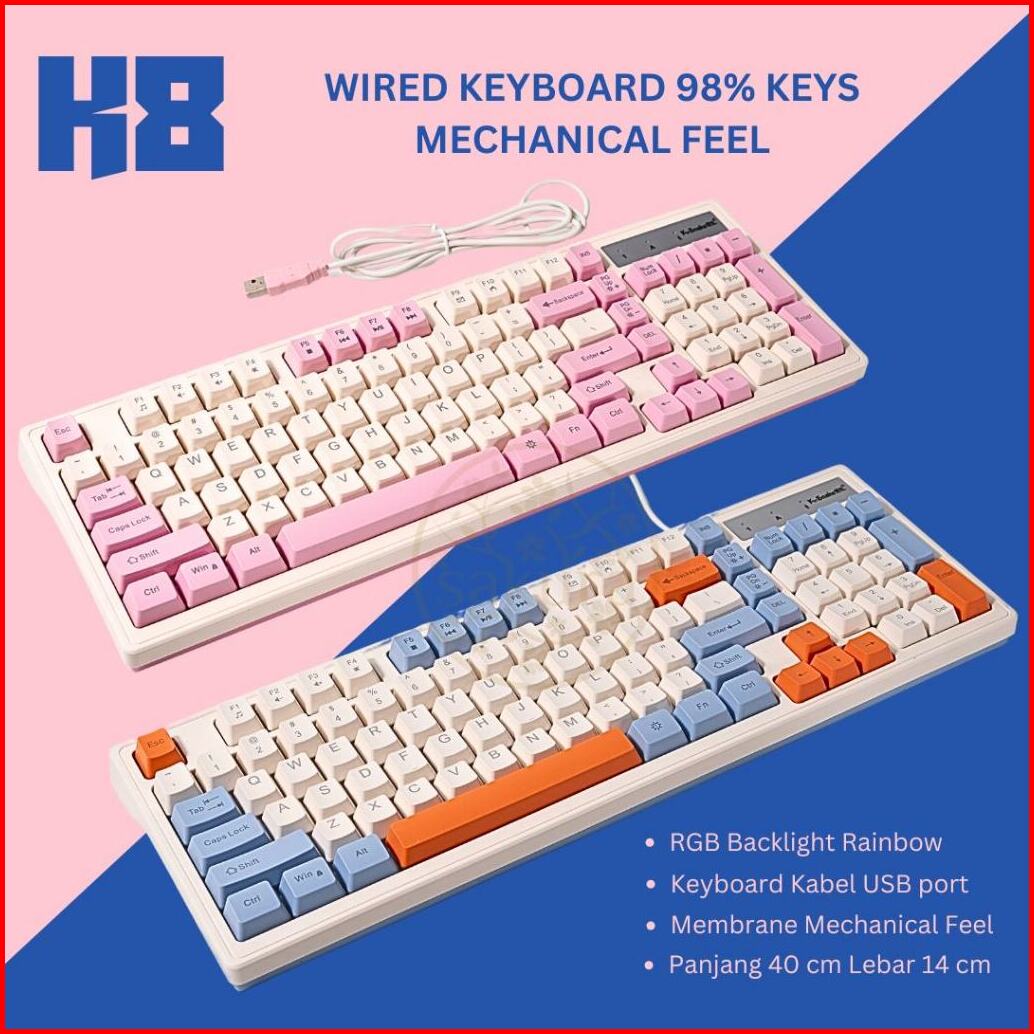 K8 Keyboard Kabel Usb Laptop Komputer Gaming Mechanical Feel 98 Keys