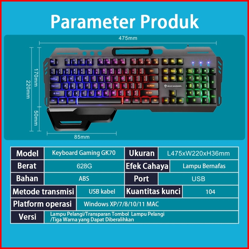 Huav Keyboard Gaming Keyboard Mekanik Gk70 Tahan Air Rgb Gaming Keyboard Untuk Pc Laptop Hp Esports Gaming Keyboard 104