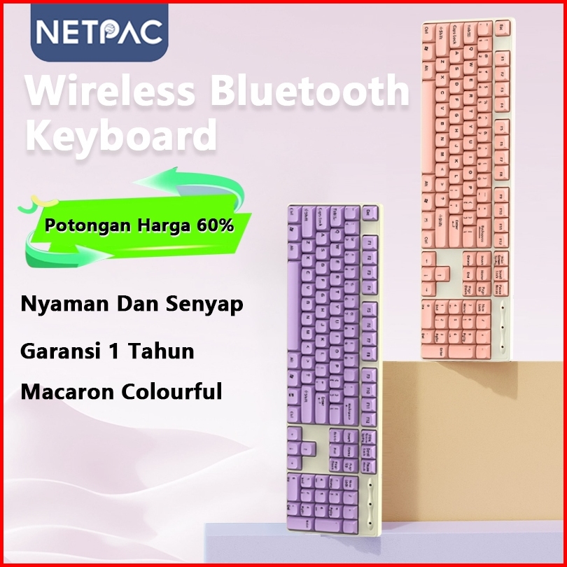 Netpac Wireless Keyboard 2.4ghz Makaron Lucu Lightweight Universal Original Mechanical Keyboard