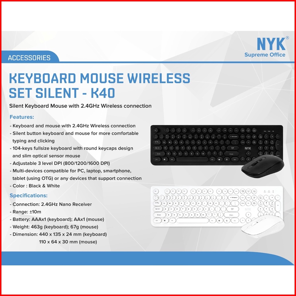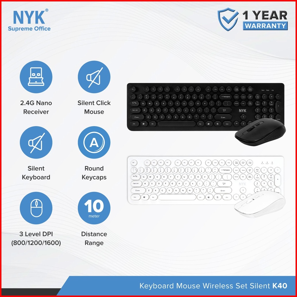 Nyk Mouse Keyboard K40 Nyk Putih Hitam Wireless Combo Black White