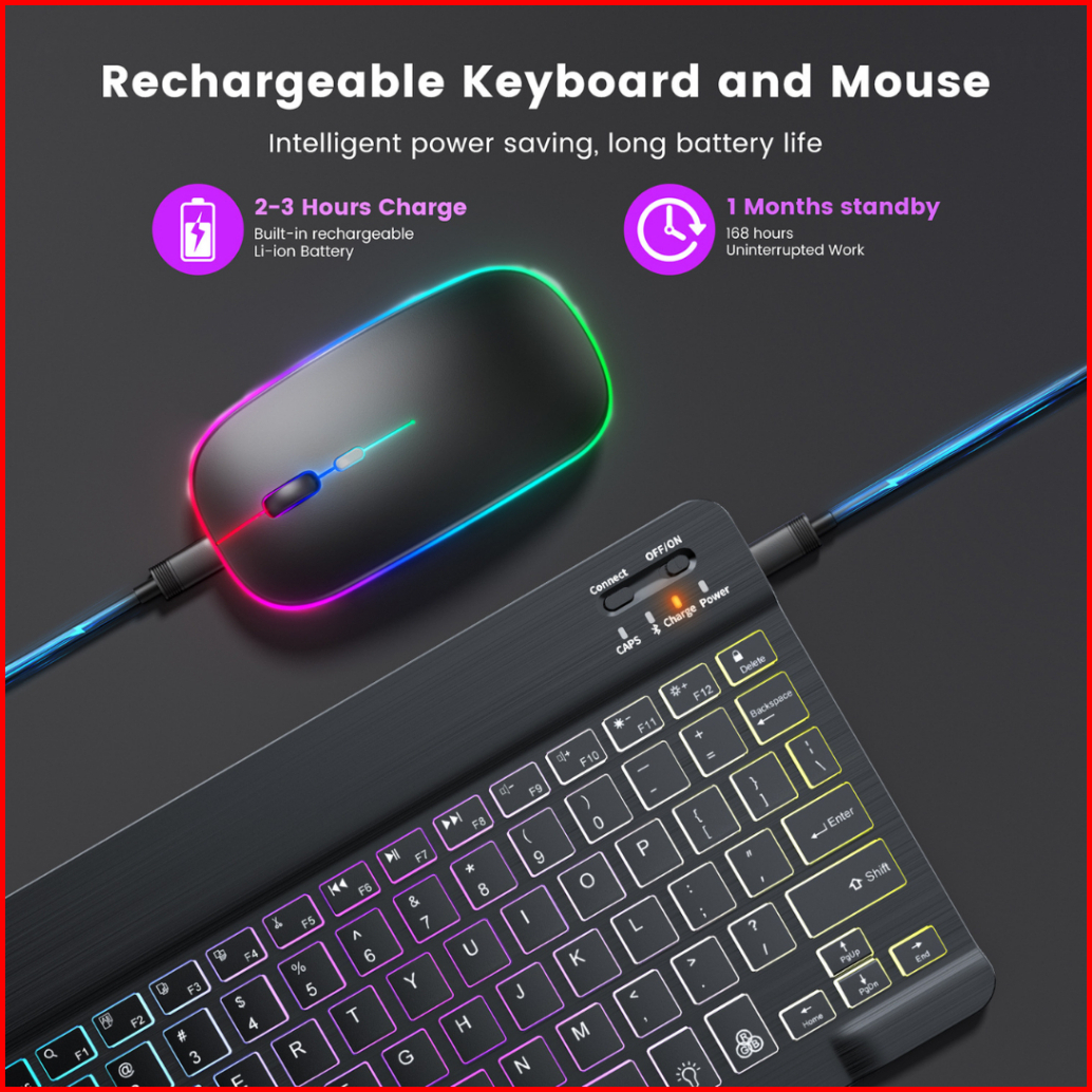 Keyboard Mouse Wireless Bluetooth Set Backlit Backlight Universal Untuk Ipad Android Pc Tab