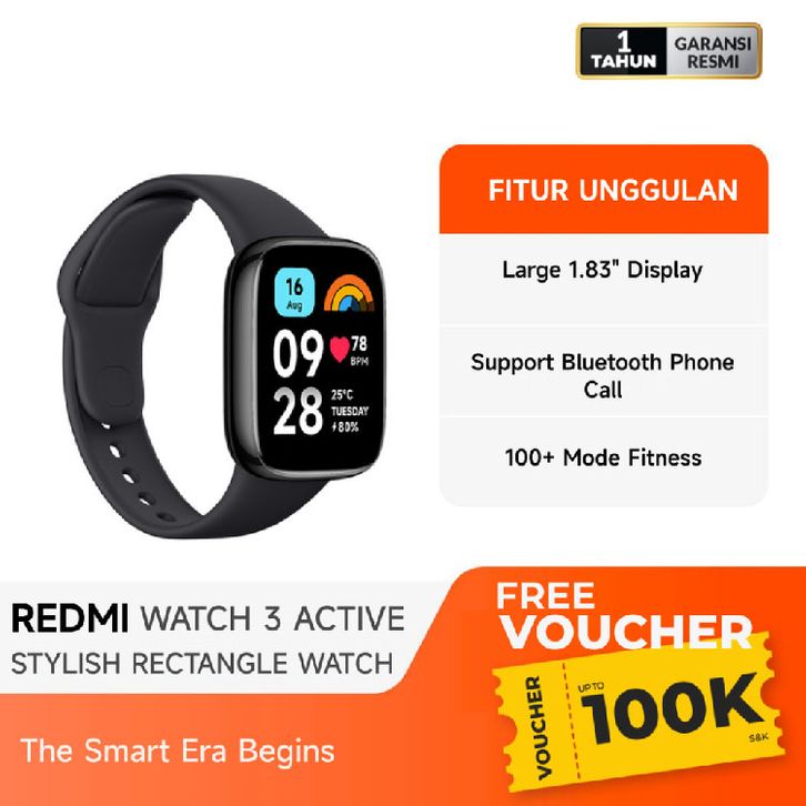 SMARTWATCH XIAOMI REDMI WATCH 3 ACTIVE 1.83 INCH BT CALL GARANSI RESMI ORIGINAL TERMURAH