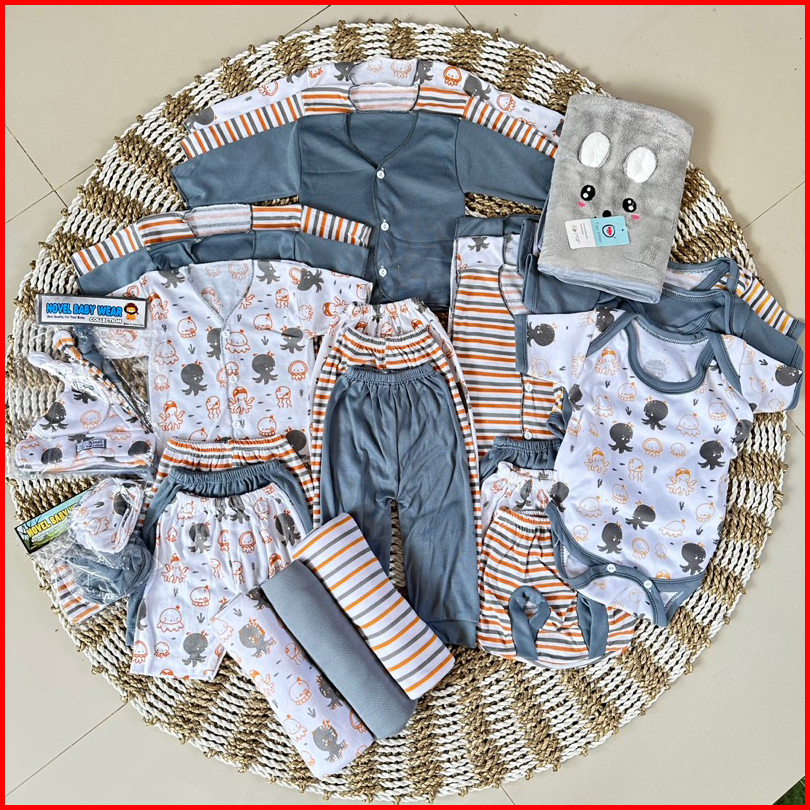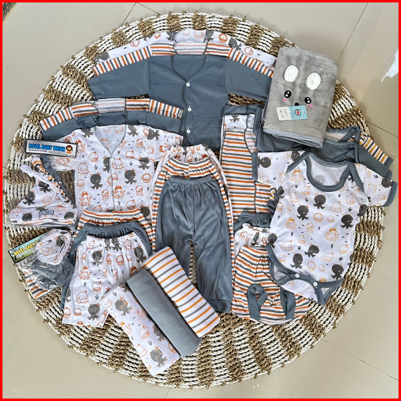 Paket Perlengkapan Bayi Baru Lahir Motif Gurita 40pcs