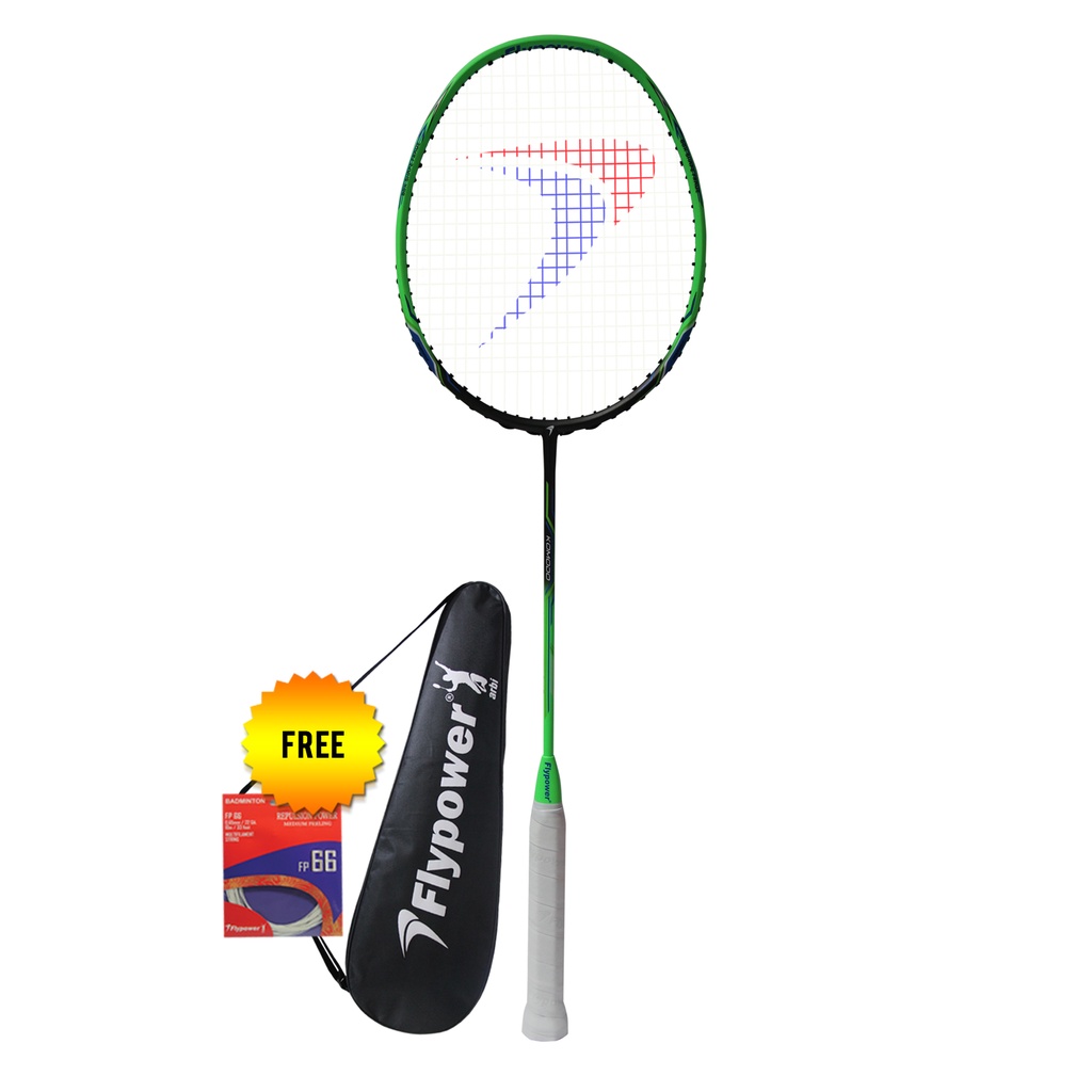FLYPOWER KOMODO RAKET BADMINTON - BLACK GREEN FREE TAS