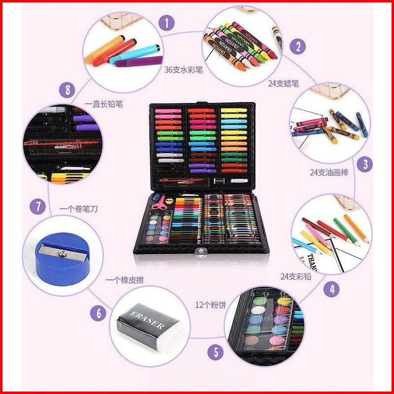 Perlengkapan Menggambar Krayon Anak Set Koper 150 In 1 Crayon Full Alat Melukis Mewarnai