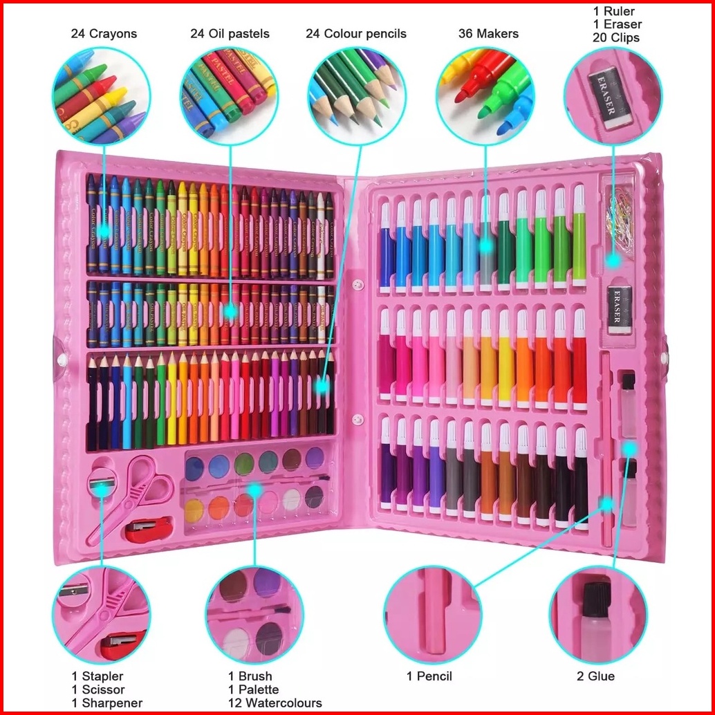 Art Set Crayon Anak Pengasah 208pcs Dan 150pcs Set Alat Menggambar Melukis Anak