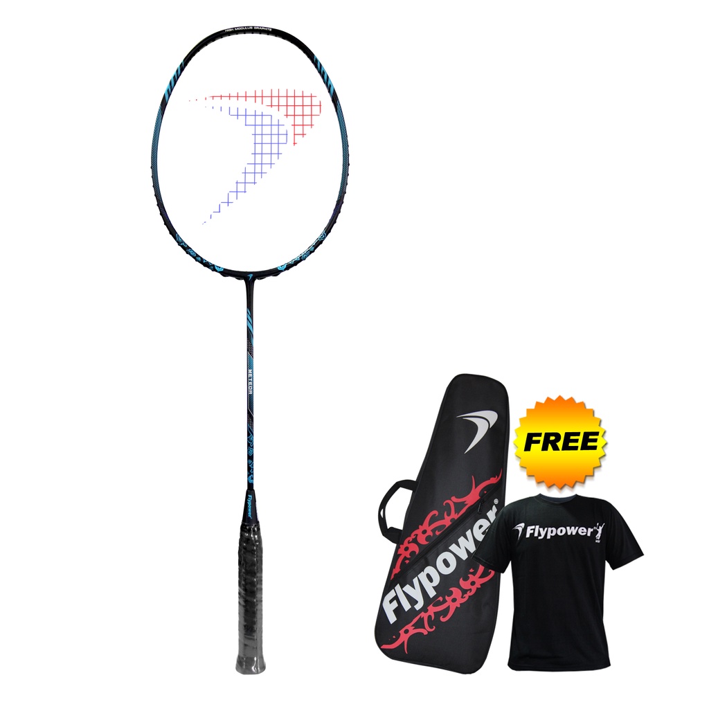 FLYPOWER METEOR RAKET BADMINTON BLACK BLUE + FREE TAS & KAOS