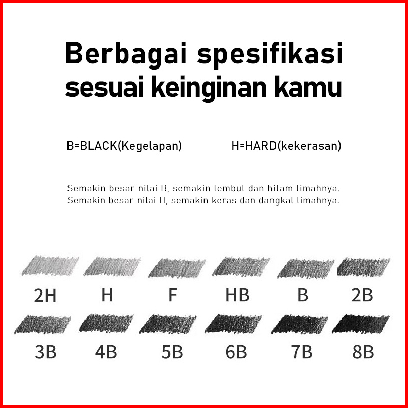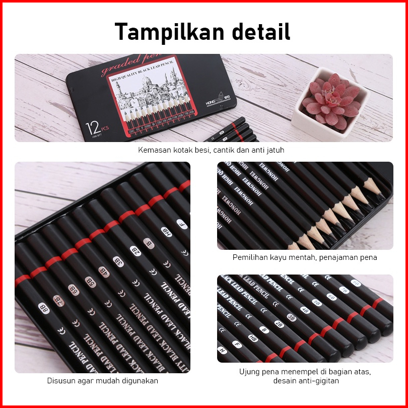 Pensil Drawing Bahan Charcoal Pensil Sketsa 1 Set 2h - 8b Pensil Khusus Sketsa Set Lengkap 12 Pcs