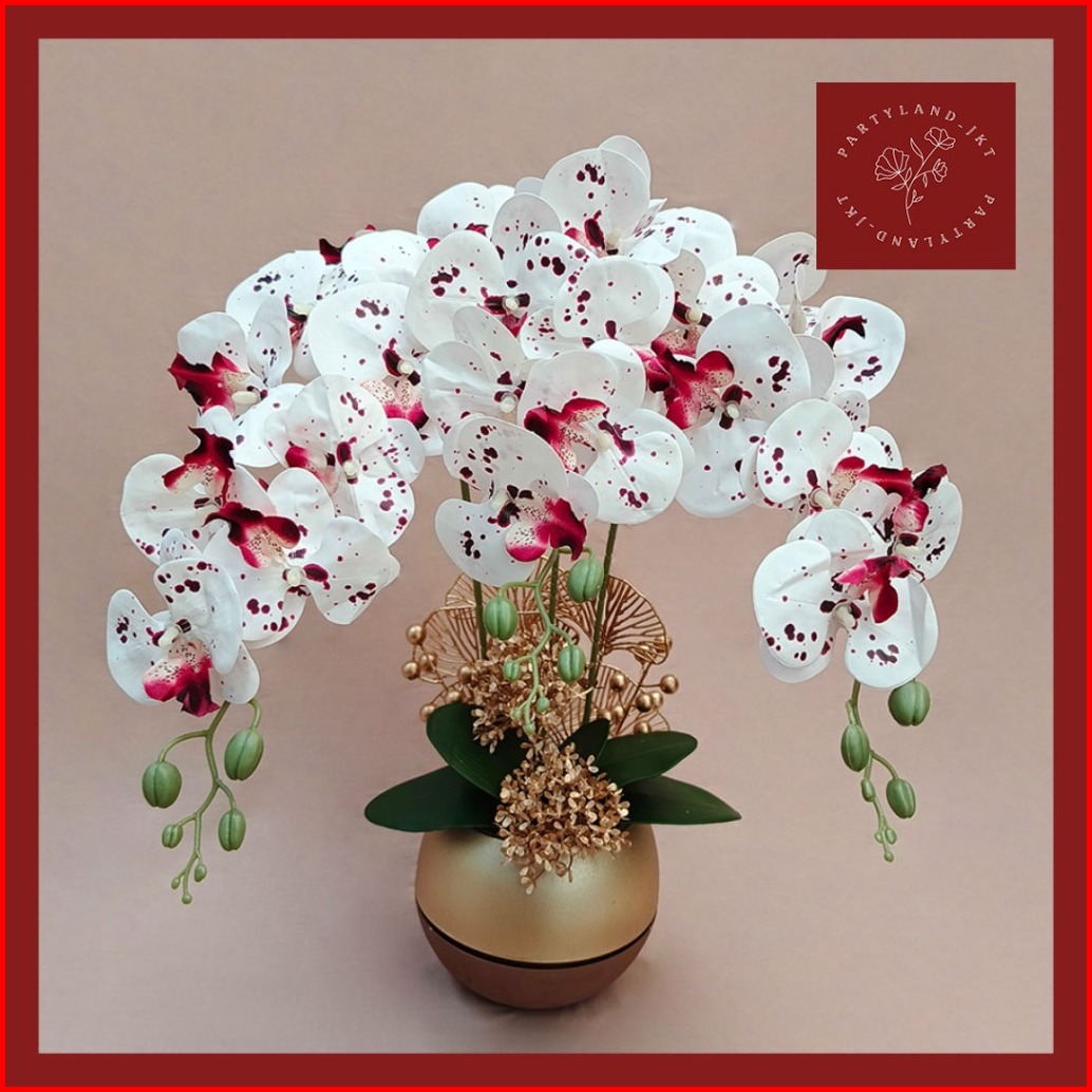Eid Mubarak 2025 Dekorasi Anggrek Latex 3 Cabang Set Bunga Pot Premium Home Dekorasi Bunga Hias Rumah Decoration Artific