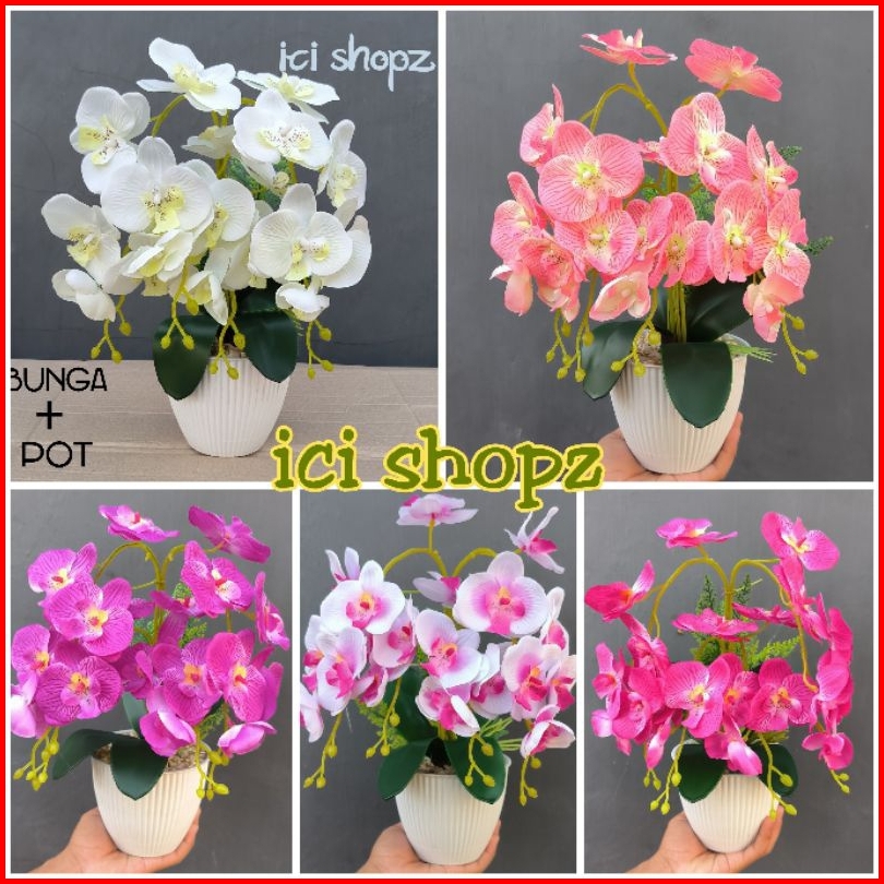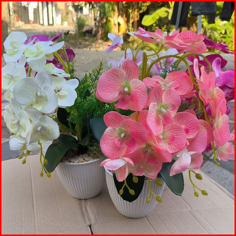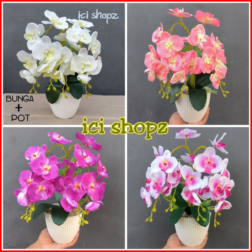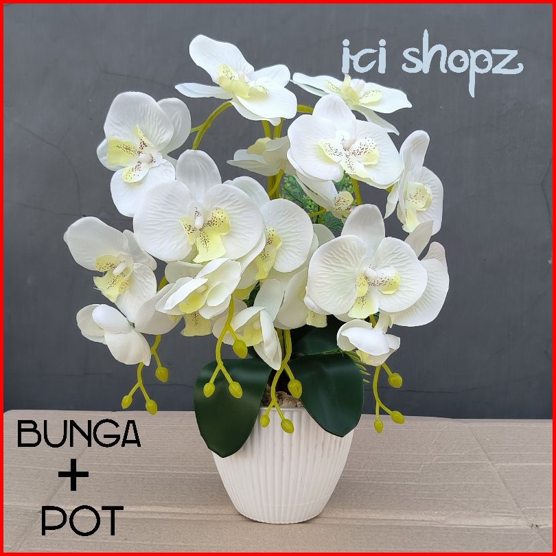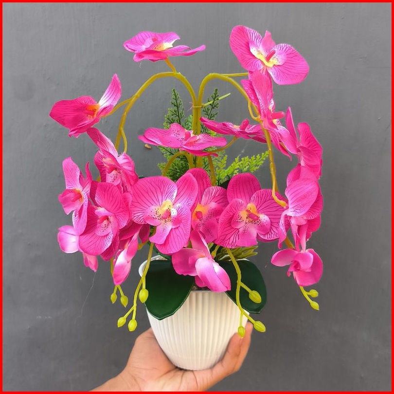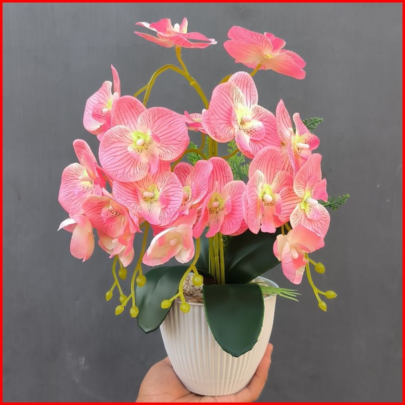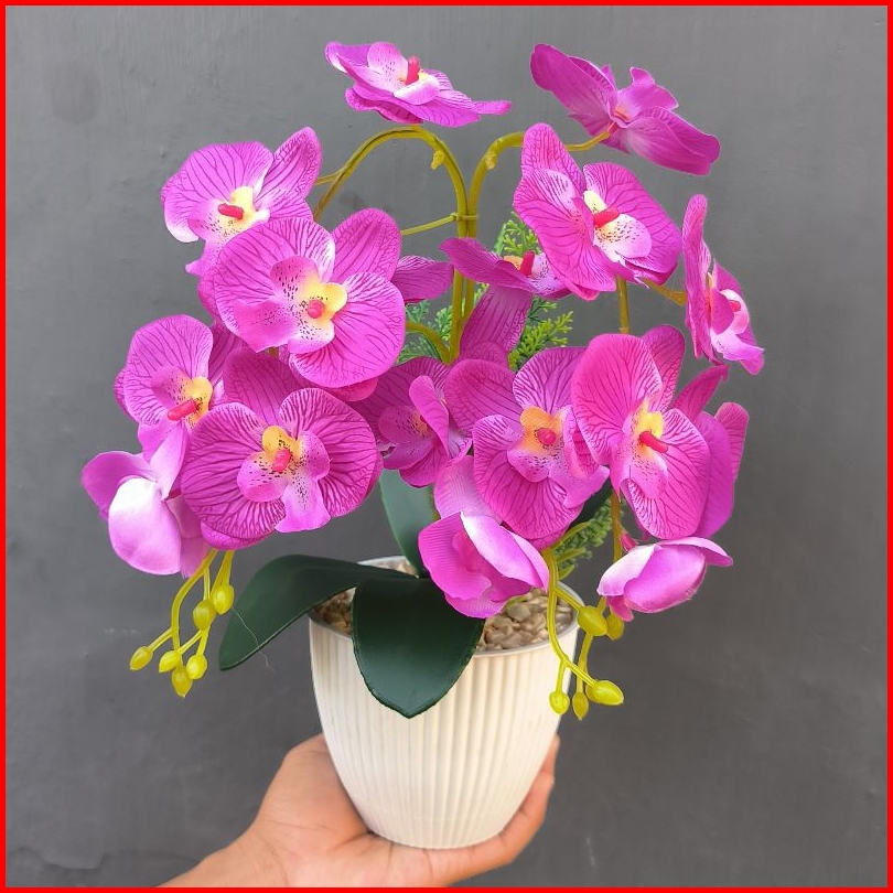 Anggrek Bulan 4 Cabang Pot Bunga Kain Daun Latex